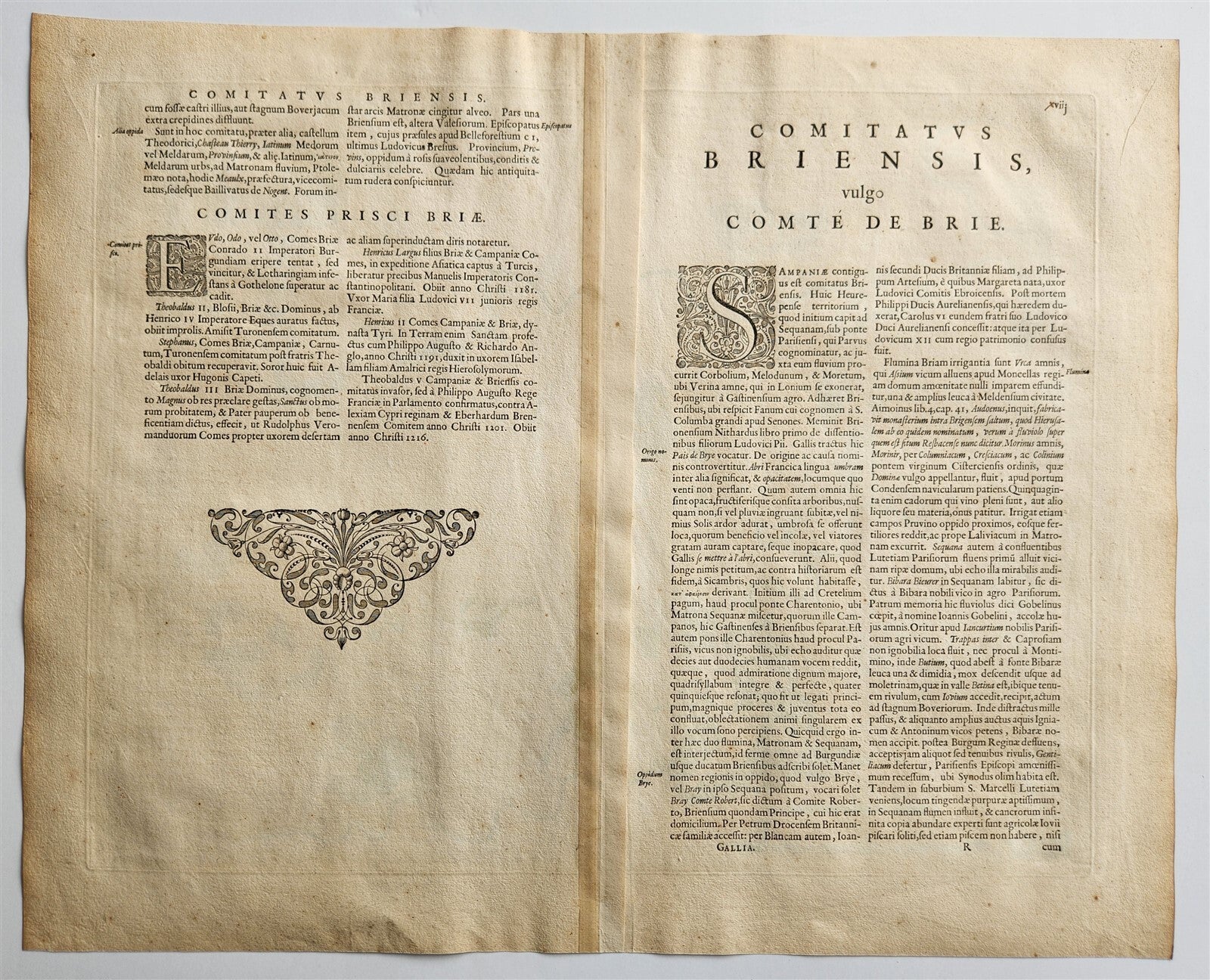 1640 MAP of LE PAIS de BRIE FRANCE by WILLEM BLAEU antique AUTHENTIC handcolored