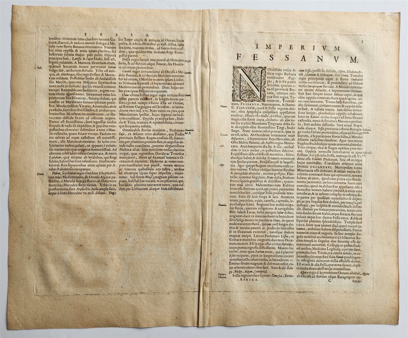 MAP FEZZAE et MAROCCHI REGNA AFRICAE CELEBERRIMAAmsterdam: Willem Blaeu; 1640. (from : Theatrum orbis terrarum, sive Atlas novus)Hand coloredOverall 18.5 by 22.5 inchesVery good condition100% authentic