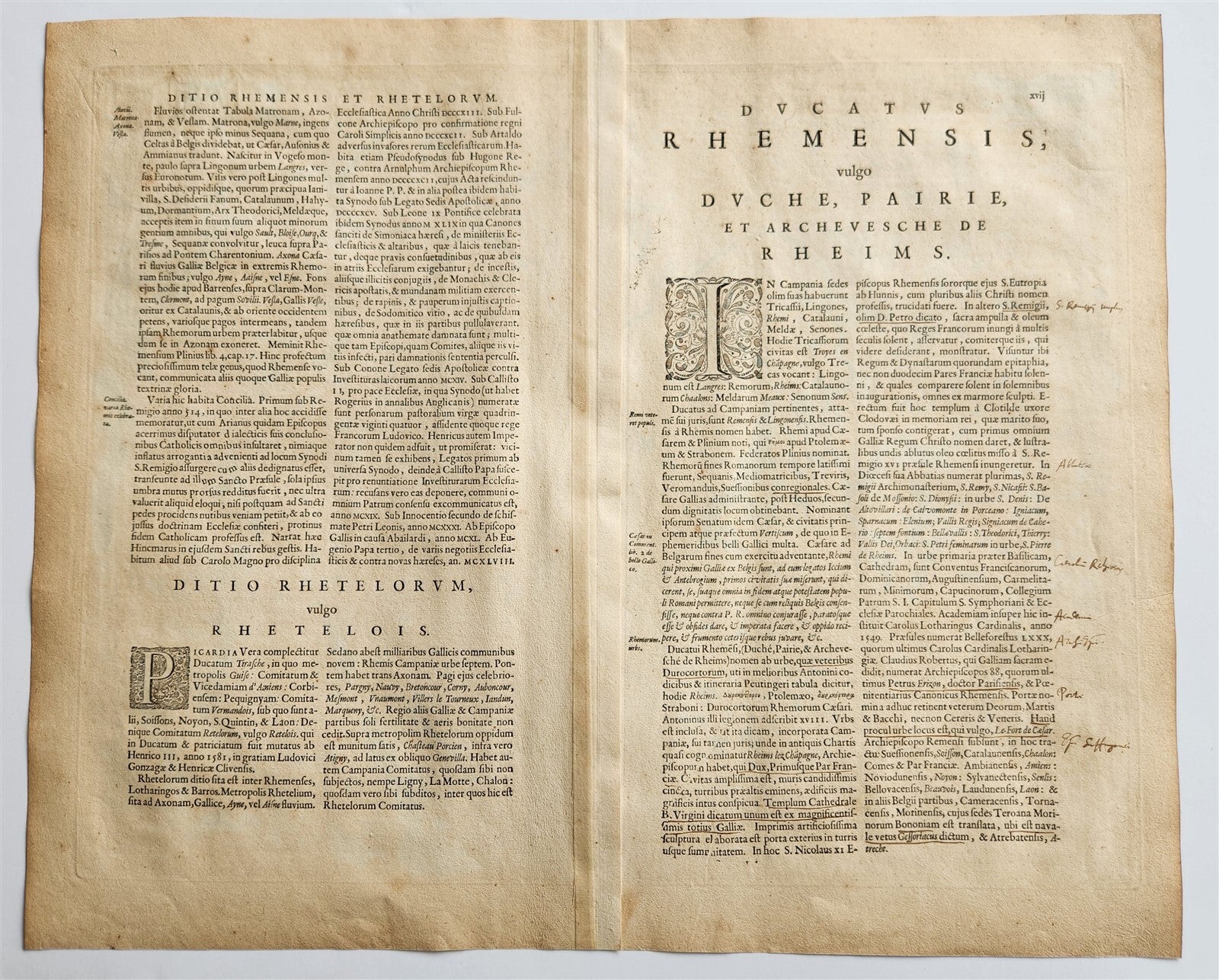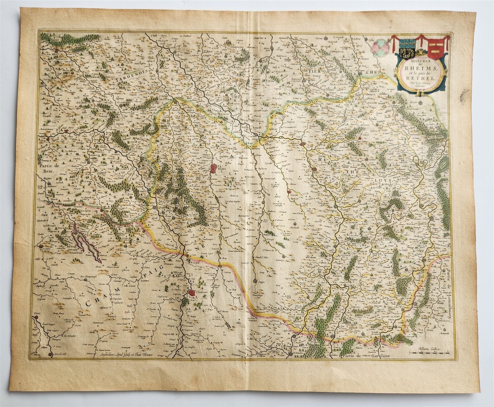 MAP Diocese de Rheins et le pais de Rethel / par Jean Jubrien.FRANCEAmsterdam: Willem Blaeu; 1640. (from : Theatrum orbis terrarum, sive Atlas novus)Hand coloredOverall 18.5 by 22.5 inchesVery good condition100% authentic