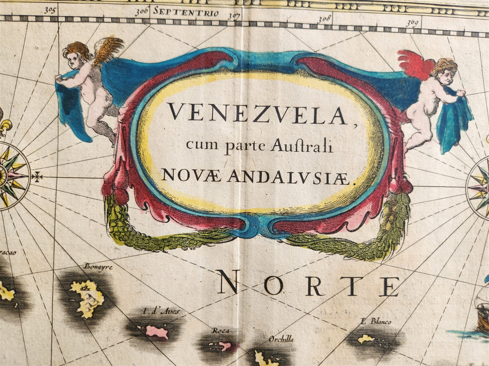 1640 MAP of VENEZUELA by WILLEM BLAEU antique AUTHENTIC hand colored
