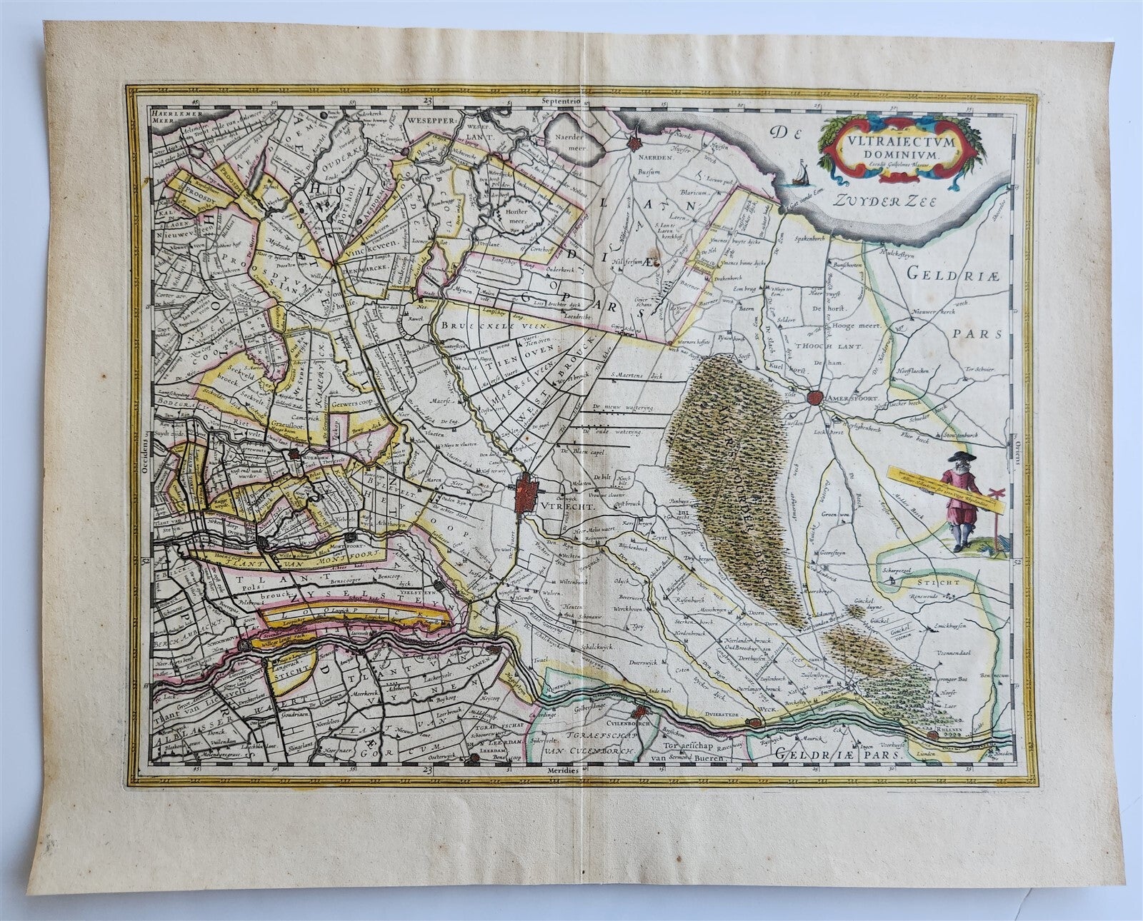 MAP ULTRAIECTUM DOMINIUMNETHERLANDSAmsterdam: Willem Blaeu; 1640. (from : Theatrum orbis terrarum, sive Atlas novus)"Ultraiectum Dominium" is the Latin name for the Province of Utrecht in the Netherlands. It translates to "Utrecht's Dominion". Specifically, it refers to the geographical area surrounding the city of Utrecht. Hand coloredOverall 18 by 22 1/4 inchesVery good condition100% authentic