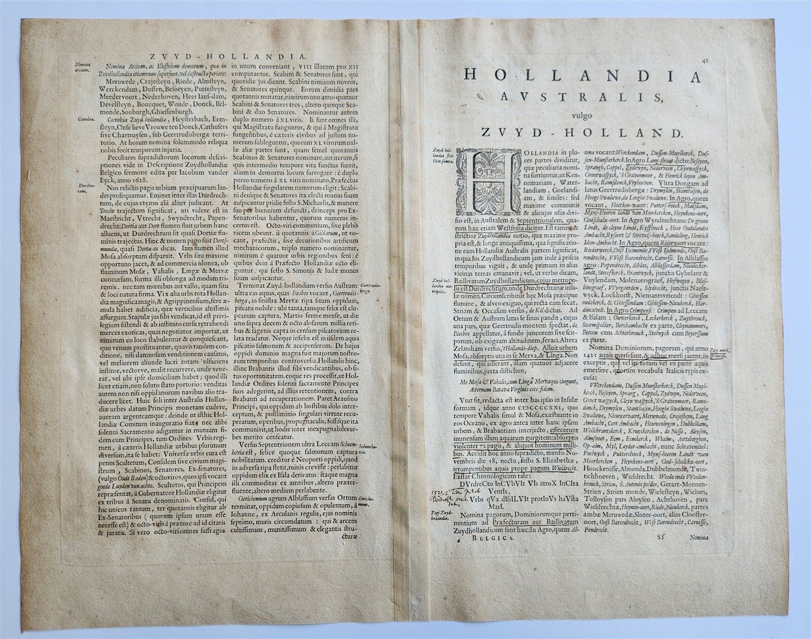 MAP ZVYDHOLLANDIA stricte sumtaAmsterdam: Willem Blaeu; 1640. (from : Theatrum orbis terrarum, sive Atlas novus)"ZVYDHOLLANDIA" refers to a specific region in South Holland and BrabantHand coloredOverall 18 by 23 inchesVery good condition100% authentic