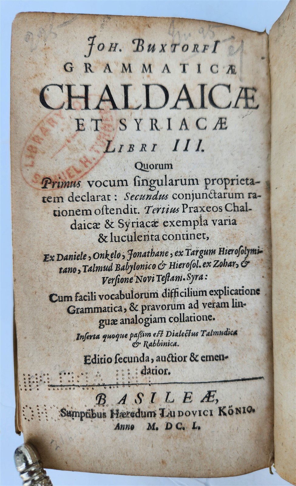 1650 Grammaticae Chaldaicae et Syriacæ by BUXTORF antique Judaica VELLUM BOUND