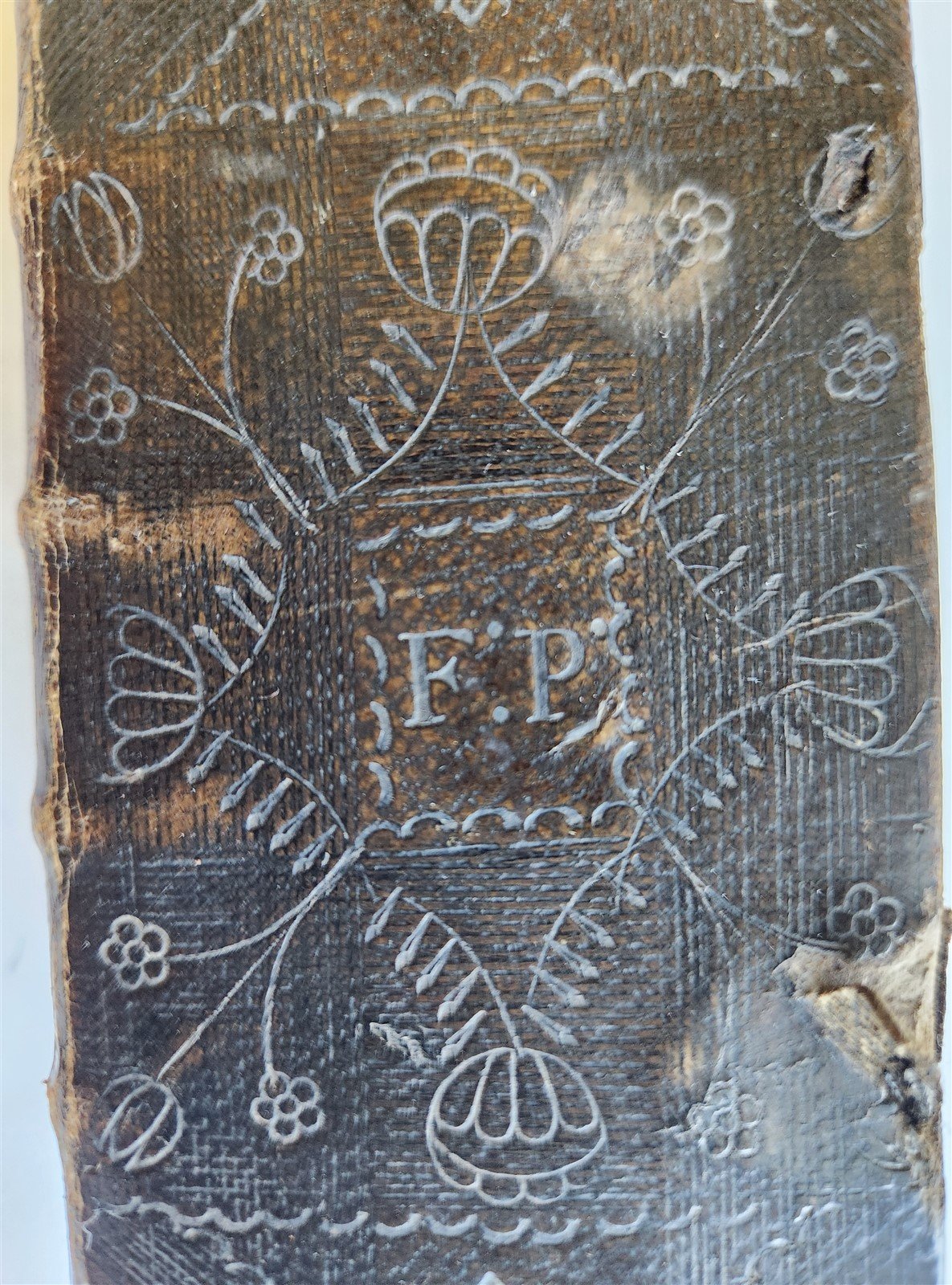 Original full calf with a design of tendrils and flowerheads ruled in blind and the initials "F. P." stamped at the centre of both covers,