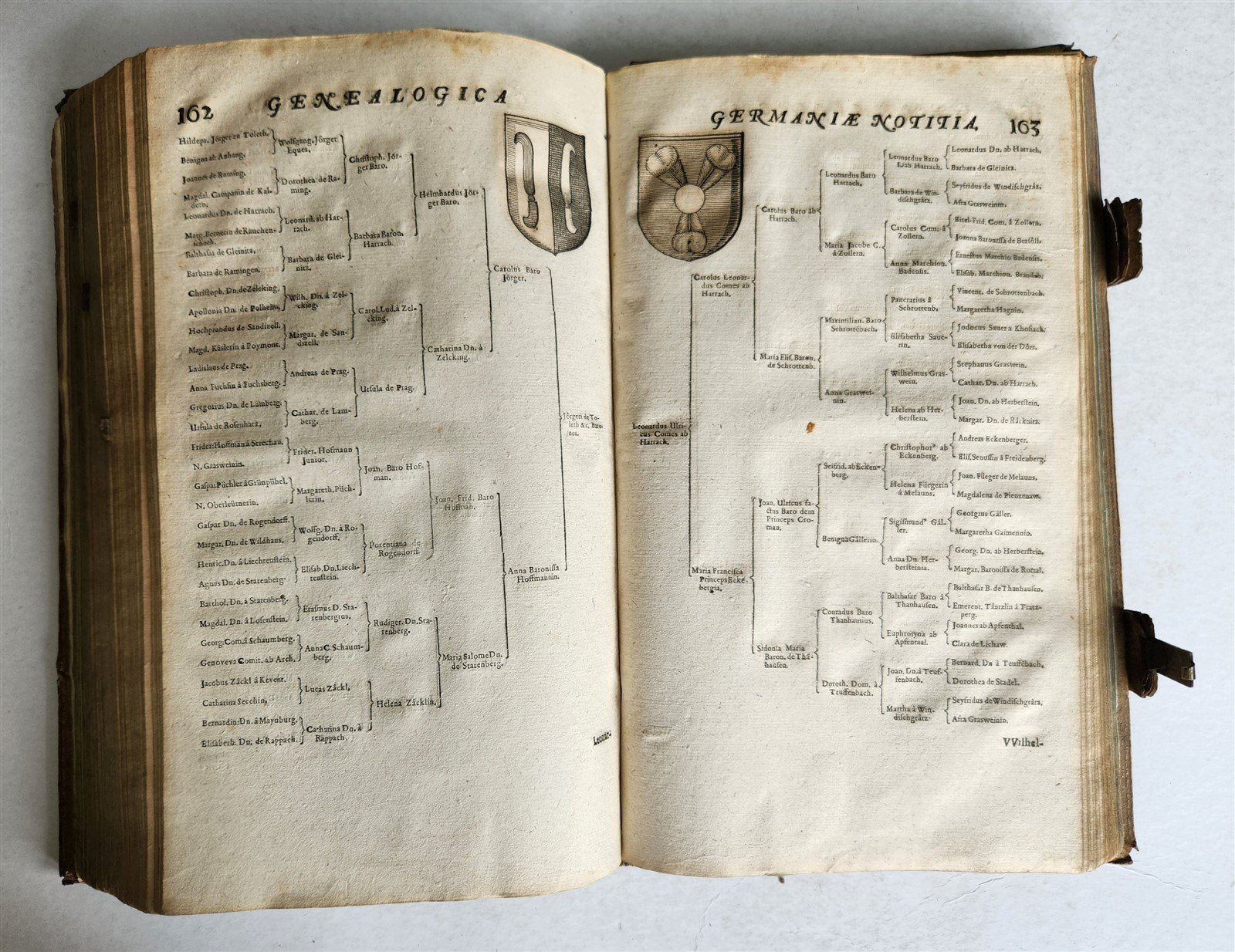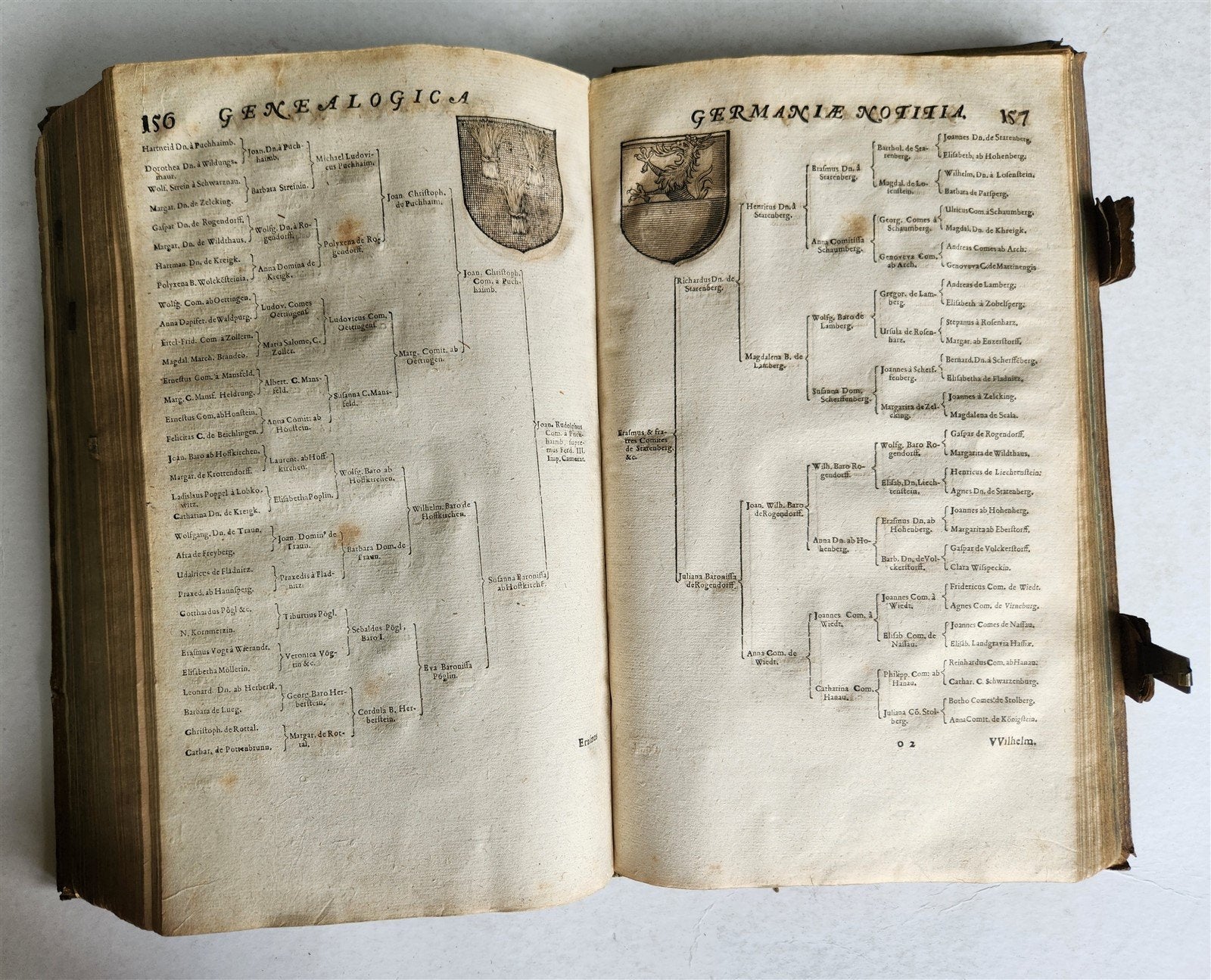1655 GERMAN GENEALOGY illustrated PIGSKIN BOUND FOLIO antique 17th CENTURY LATIN