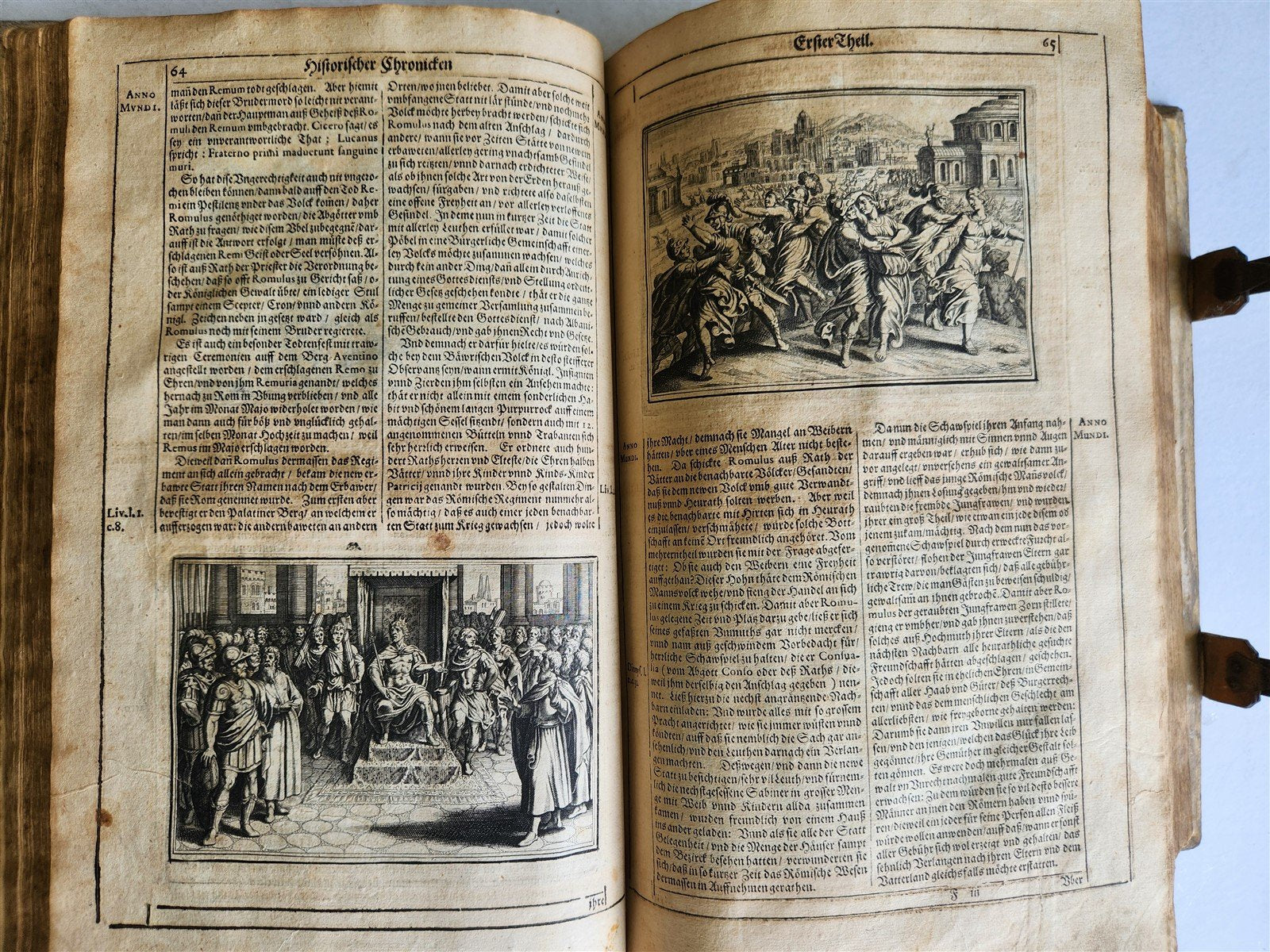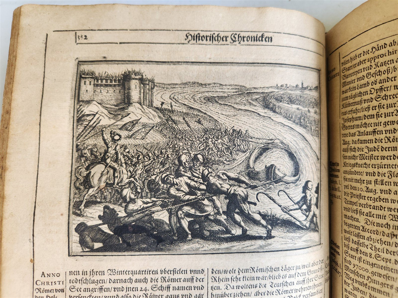 1657 HISTORICAL WORLD'S CHRONICLE antique ILLUSTRATED PIGSKIN FOLIO