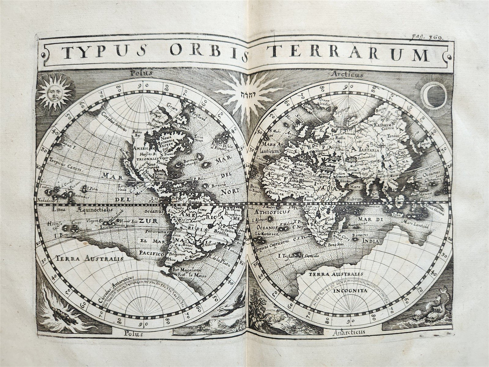 With engraved frontispiece, 31 portrait engravings with 156 portrait miniatures, 1 double-page engraved world map, 1 double-page engraved folded map of Ostend, and 329 text engravings by M. Merian.