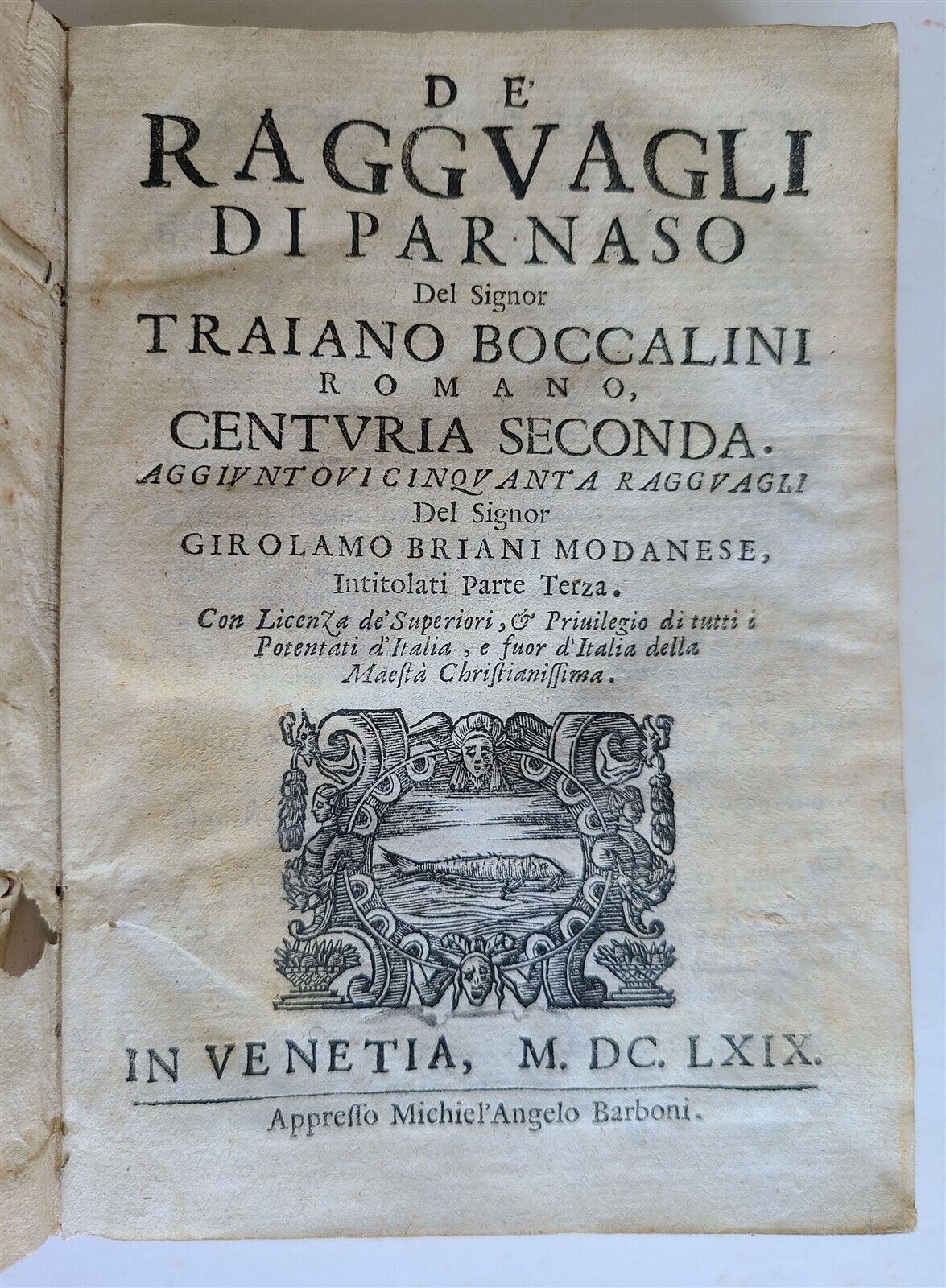 1669 17th century SATIRE by Trajano Boccalini antique VELLUM bound in ITALIAN