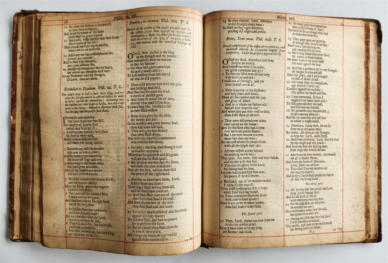 Book of Common Prayer (The), and Administration of the Sacraments ..., with:Whole book of PsalmsCambridge; 168319th century half leather over marbled boards bindingAll leaves ruled in redSize : 7 1/3 by 9 1/3 inchesText in English