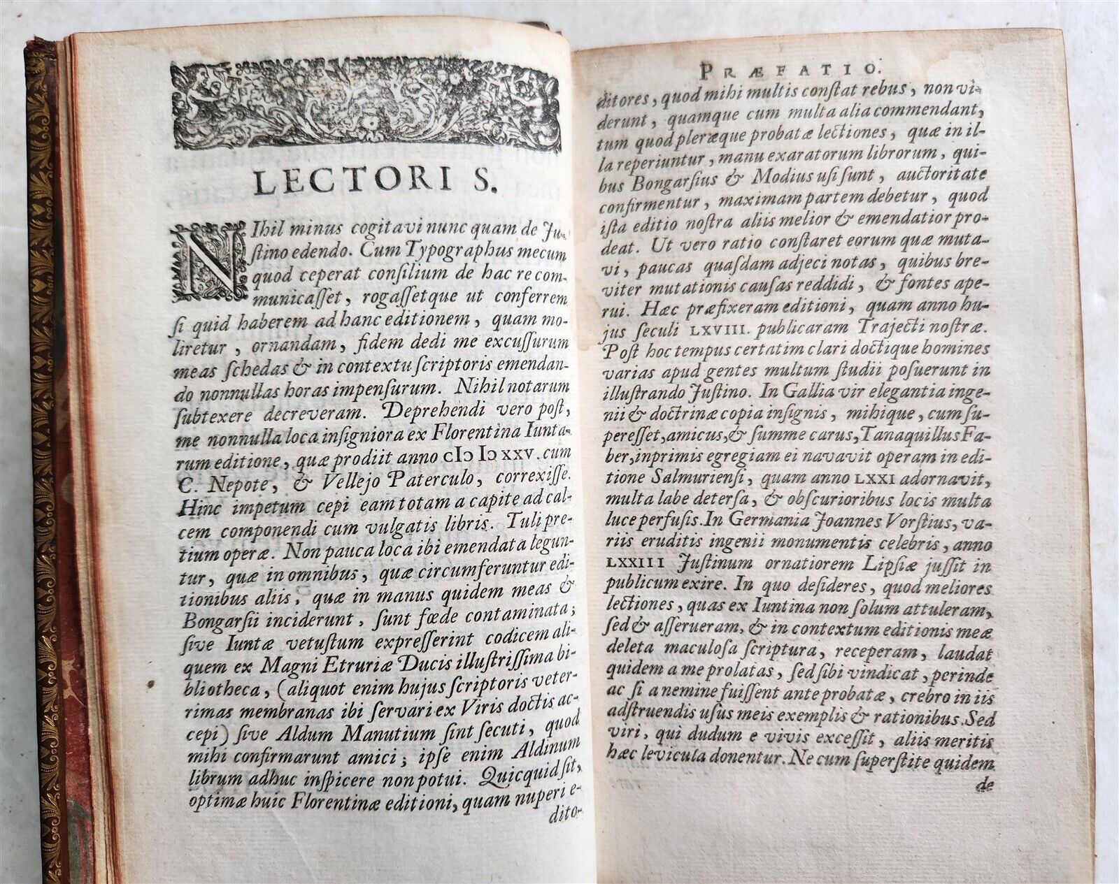 1683 HISTORIAE PHILIPPICAE by JUSTINIUS DECORATIVE BINDING antique