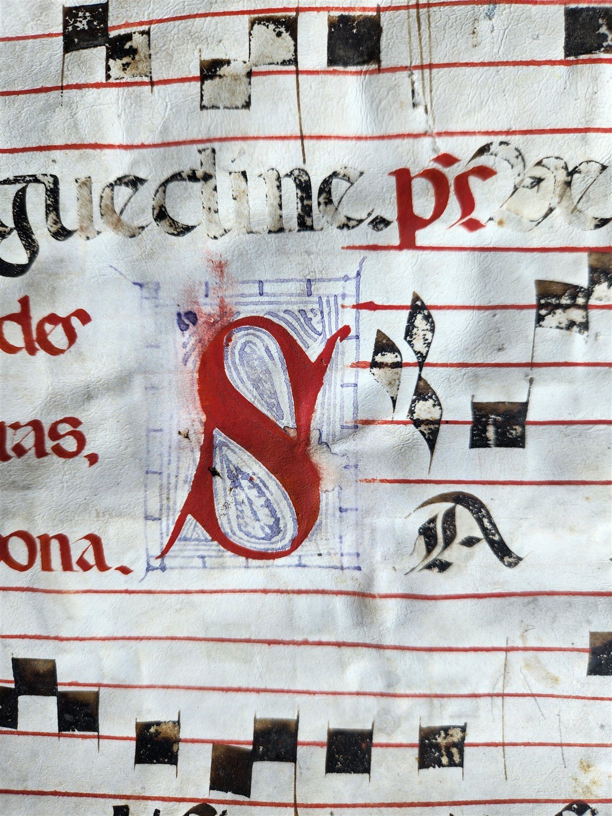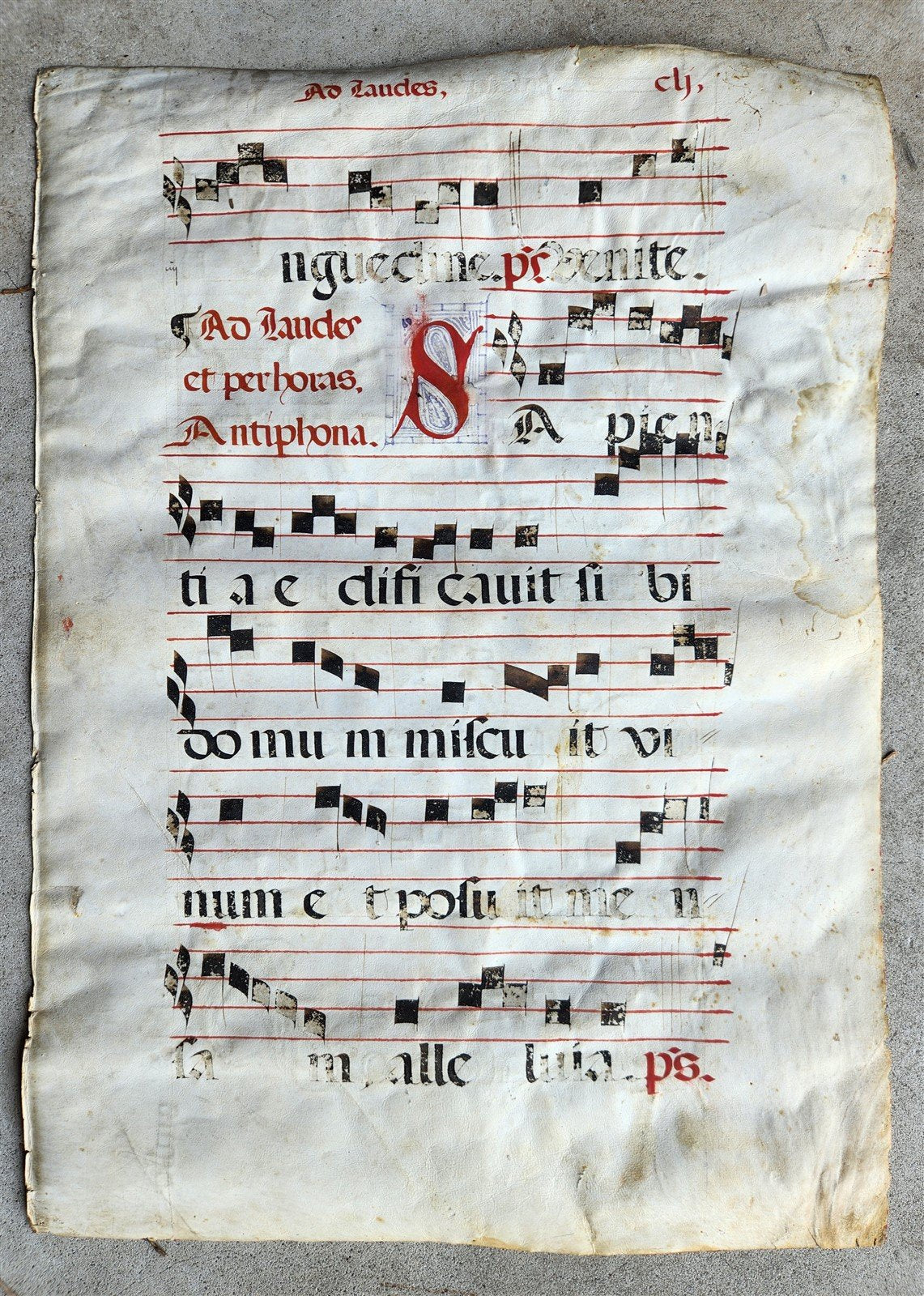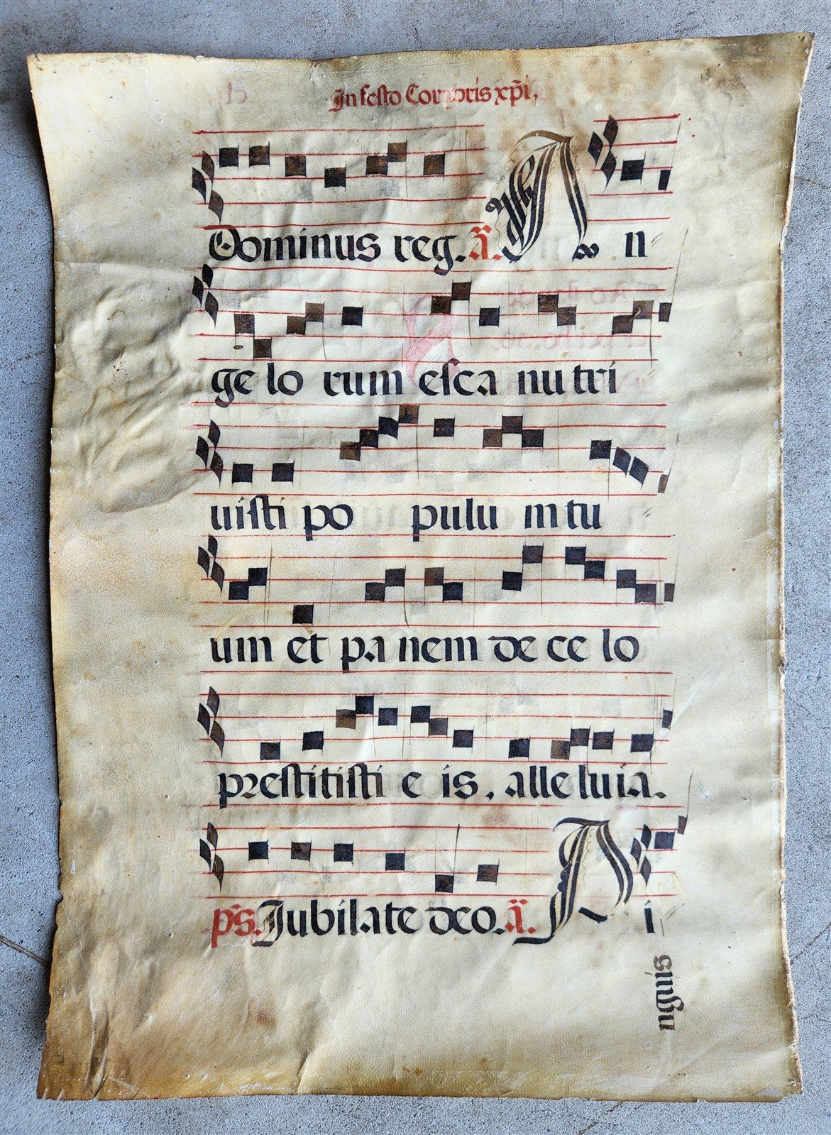 16th century ANTIPHONAL VELLUM CHART MANUSCRIPT antique music score 14.5x20.5