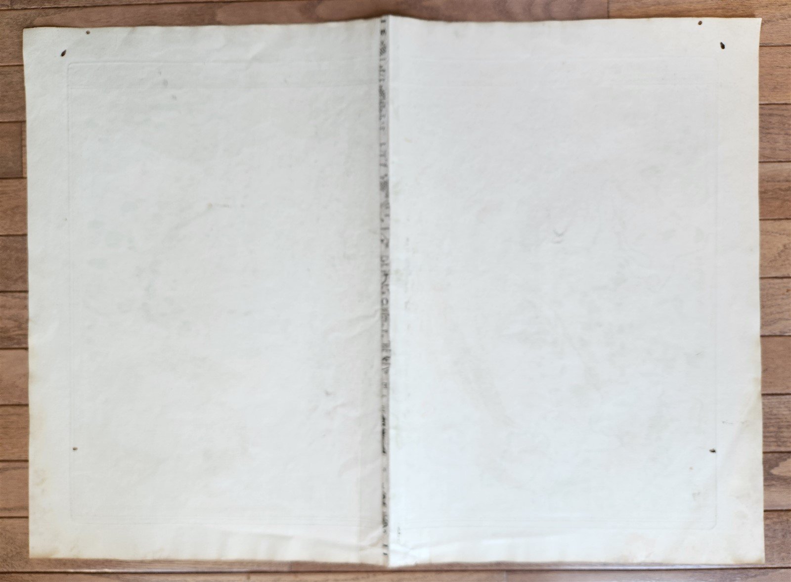 good condition, fold in the middle, a few holes at the margins