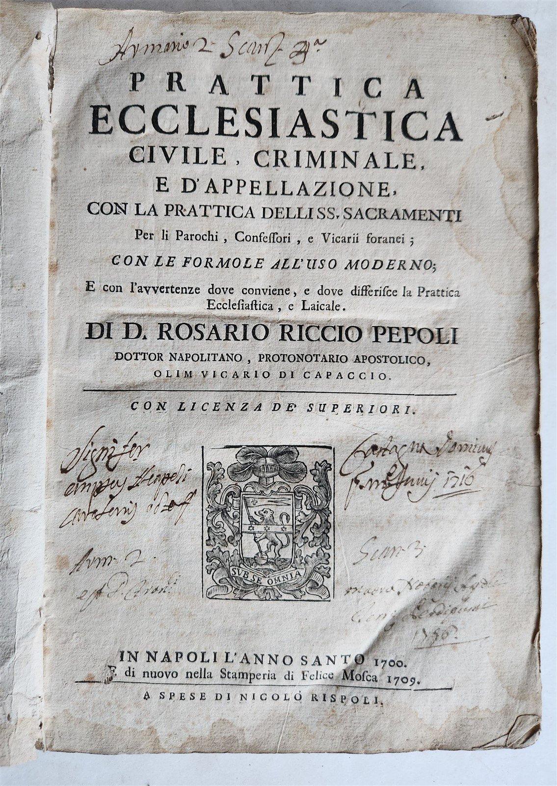 1709 PRATTICA ECCLESIASTICA CIVILE CRIMINALE antique VELLUM BOUND LAW BOOK FOLIO