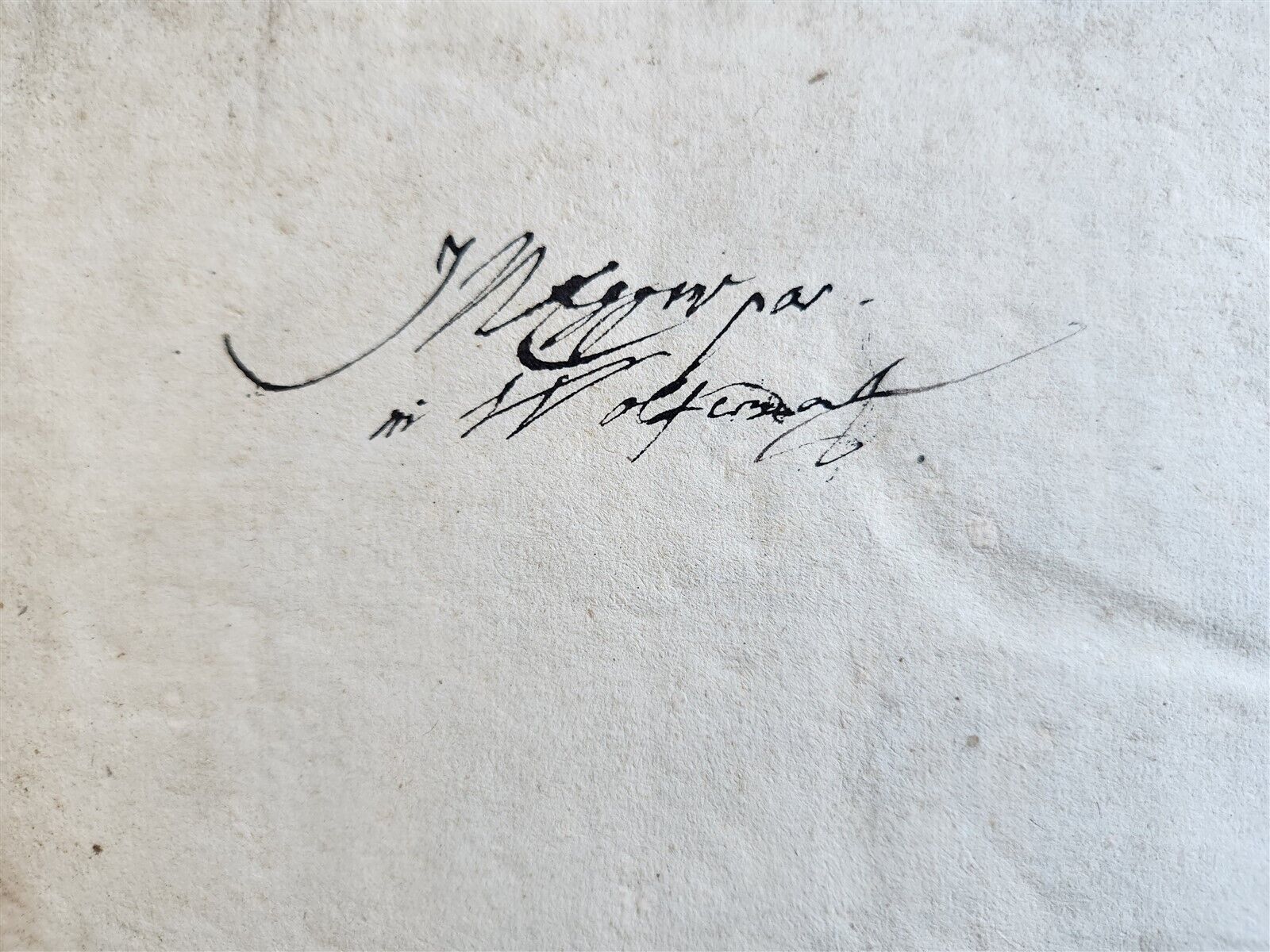 Covers soiled, lacks piece of pigskin at the lower right corner of the front cover, some toning and foxing