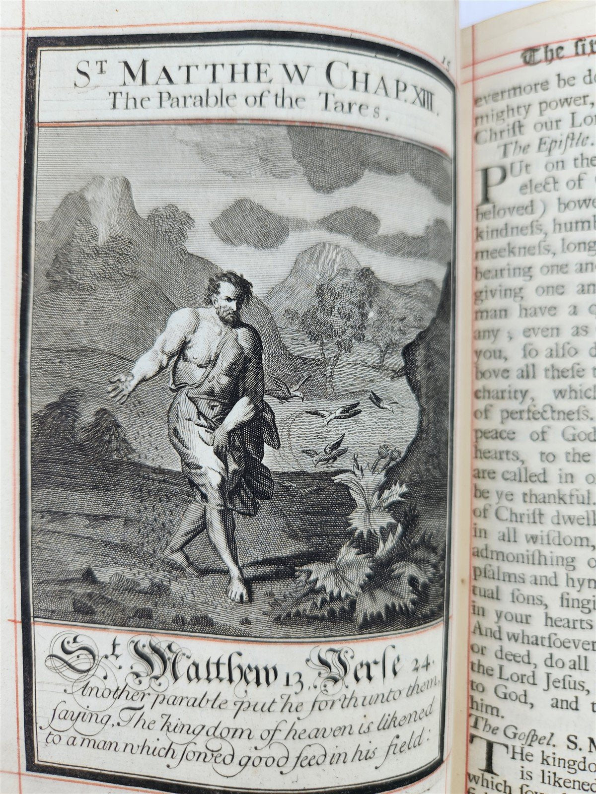 1713 BOOK of COMMON PRAYER ILLUSTRATED antique ORIGINAL BINDING by John Baskett