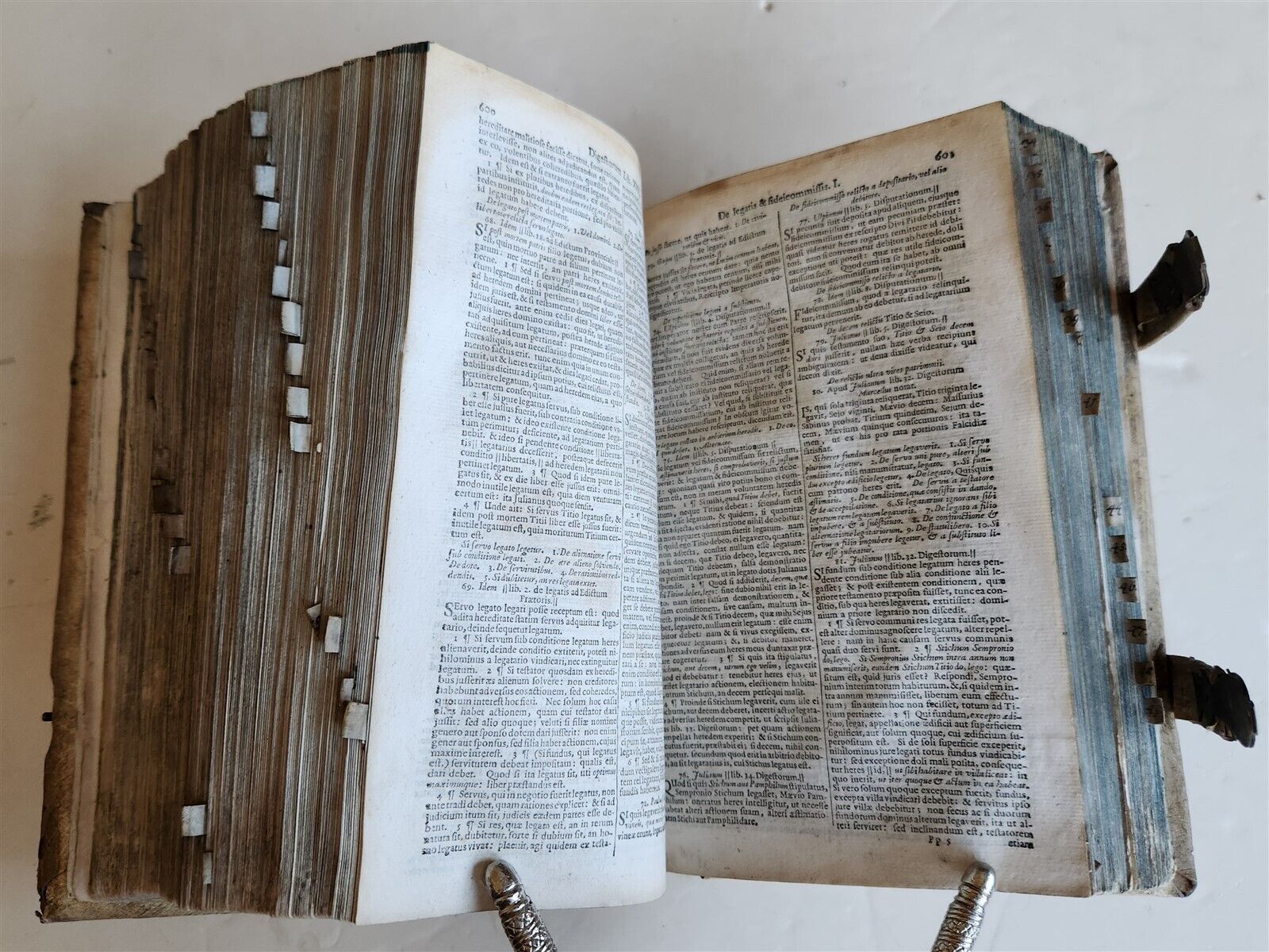 1713 CORPORIS JURIS CIVILIS antique BLIND-STAMPED PIGSKIN BINDING law book