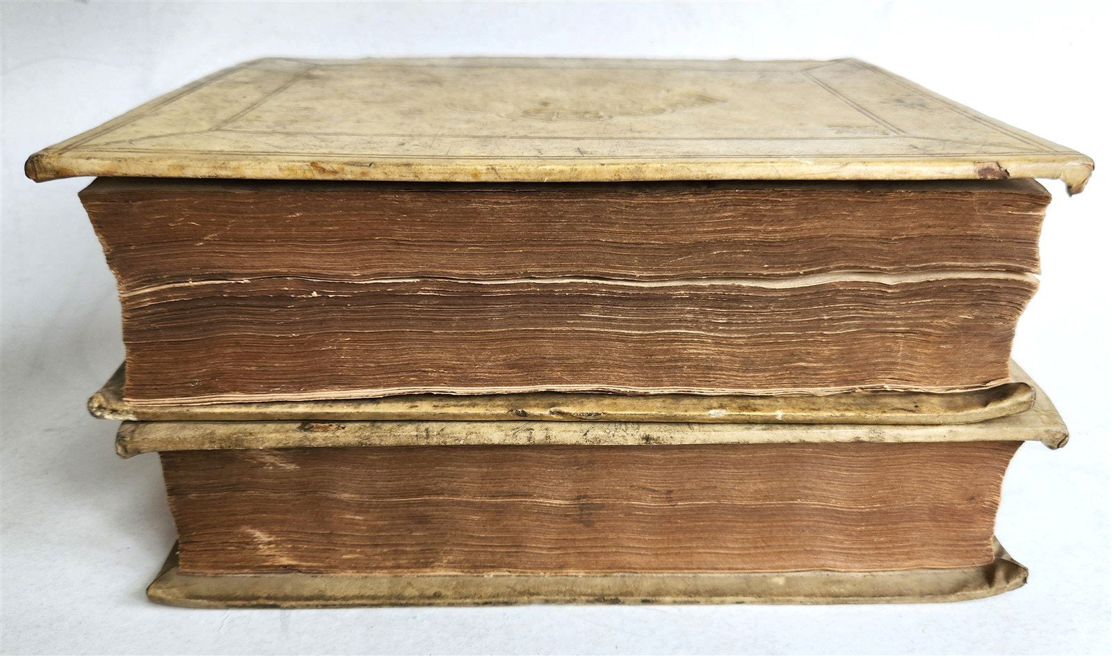 Original vellum decorated in blind; spines repaired, occasional foxing, generally sound internally.