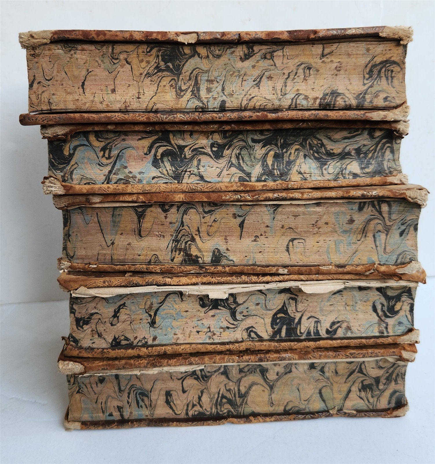 Original mottled calf binding, worn. Spines with raised bands and title labels, marbled endpapers and edges.