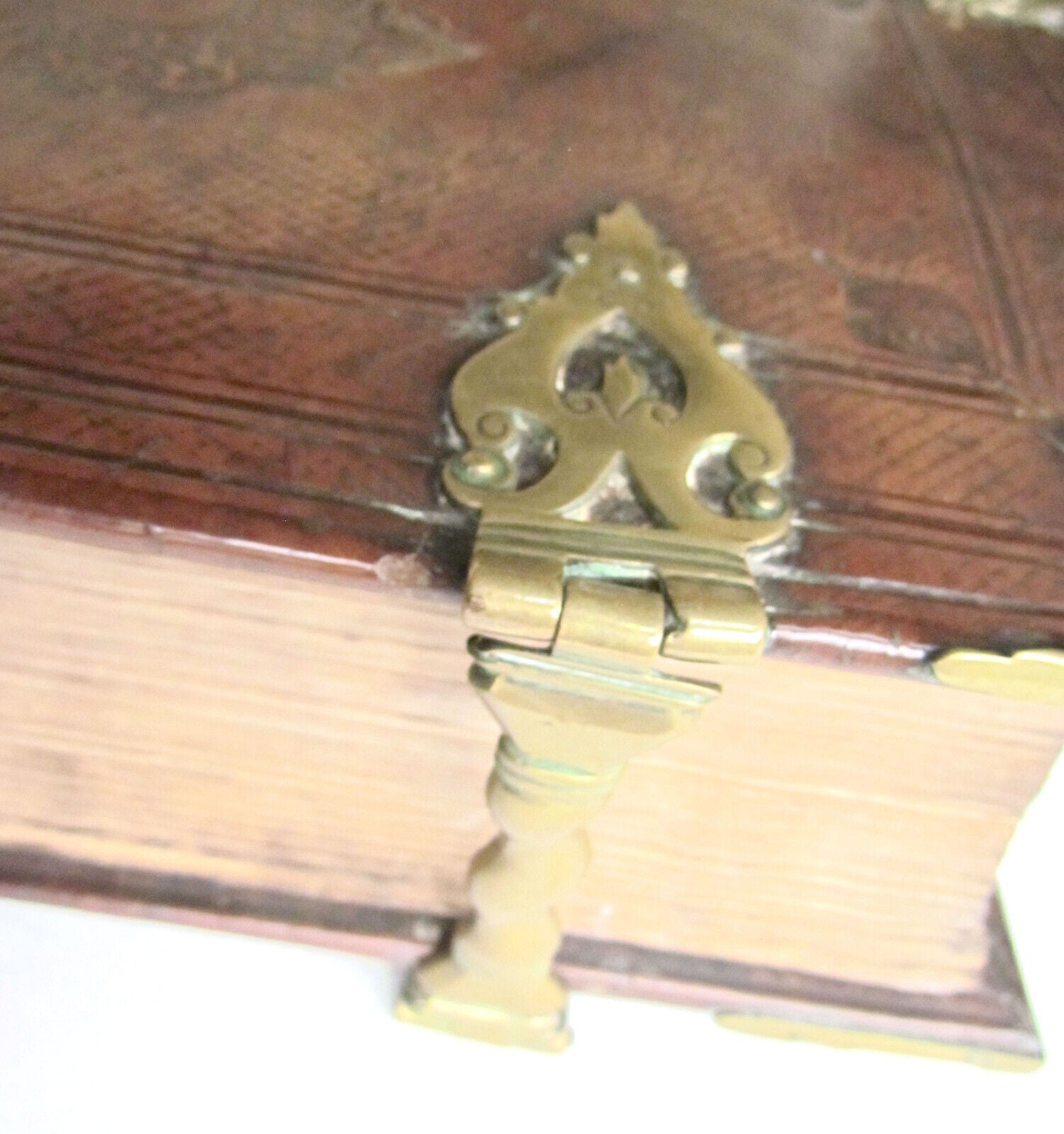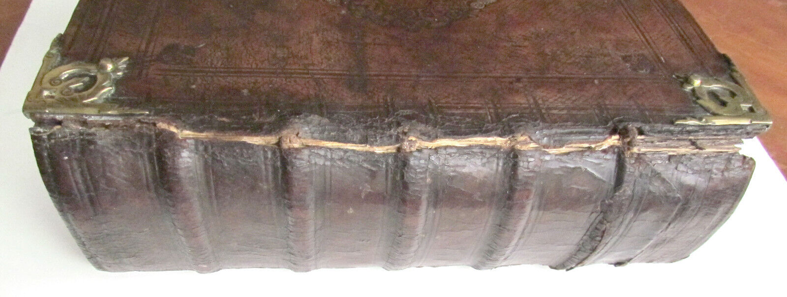 bound in original full leather with intact brass clasps , catches and 8 brass corner pieces.