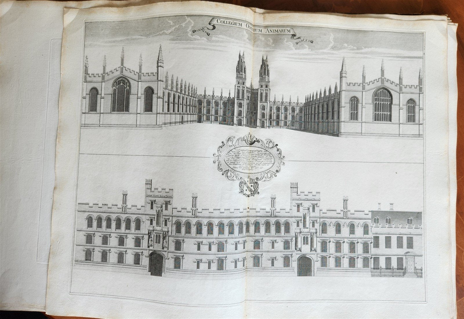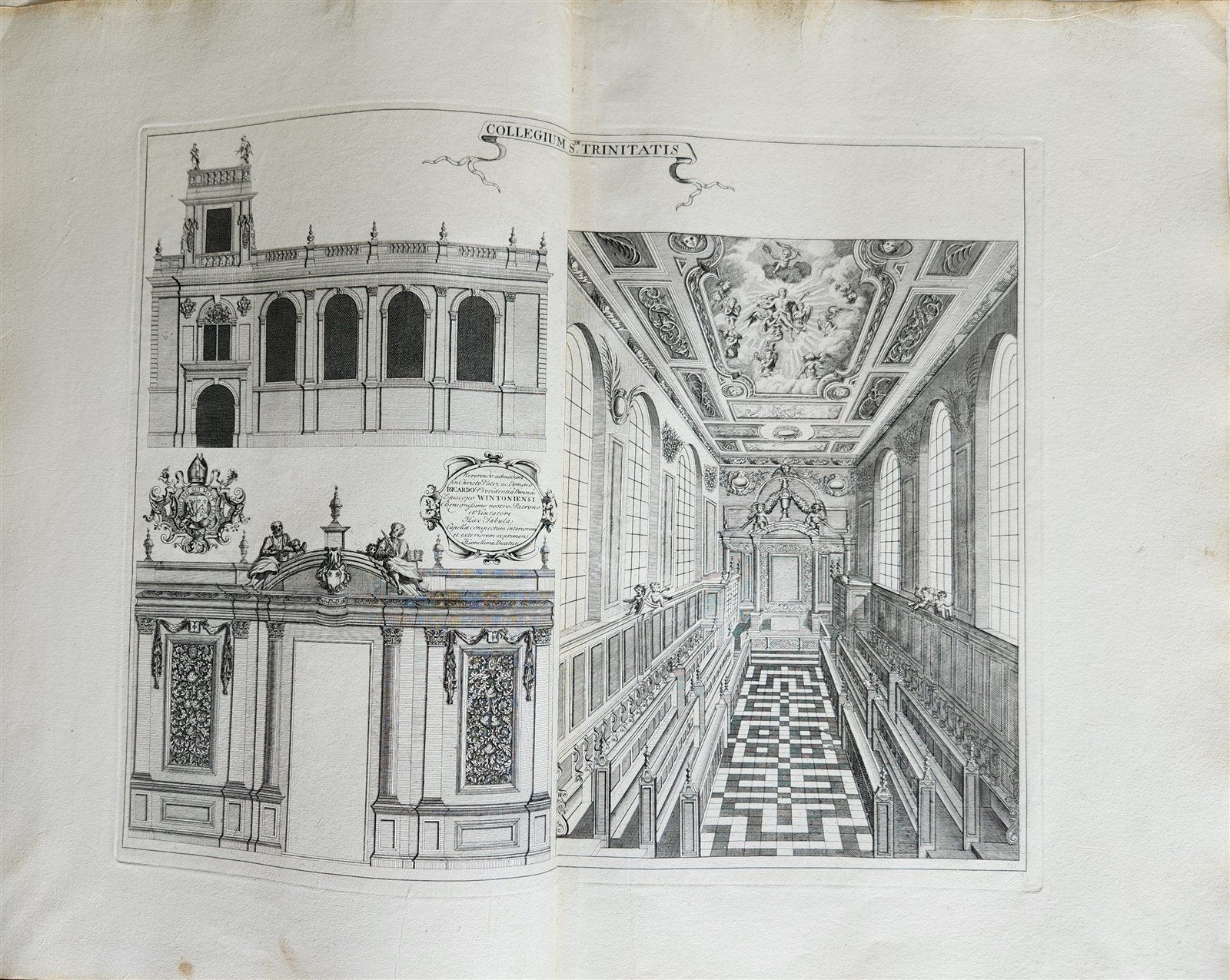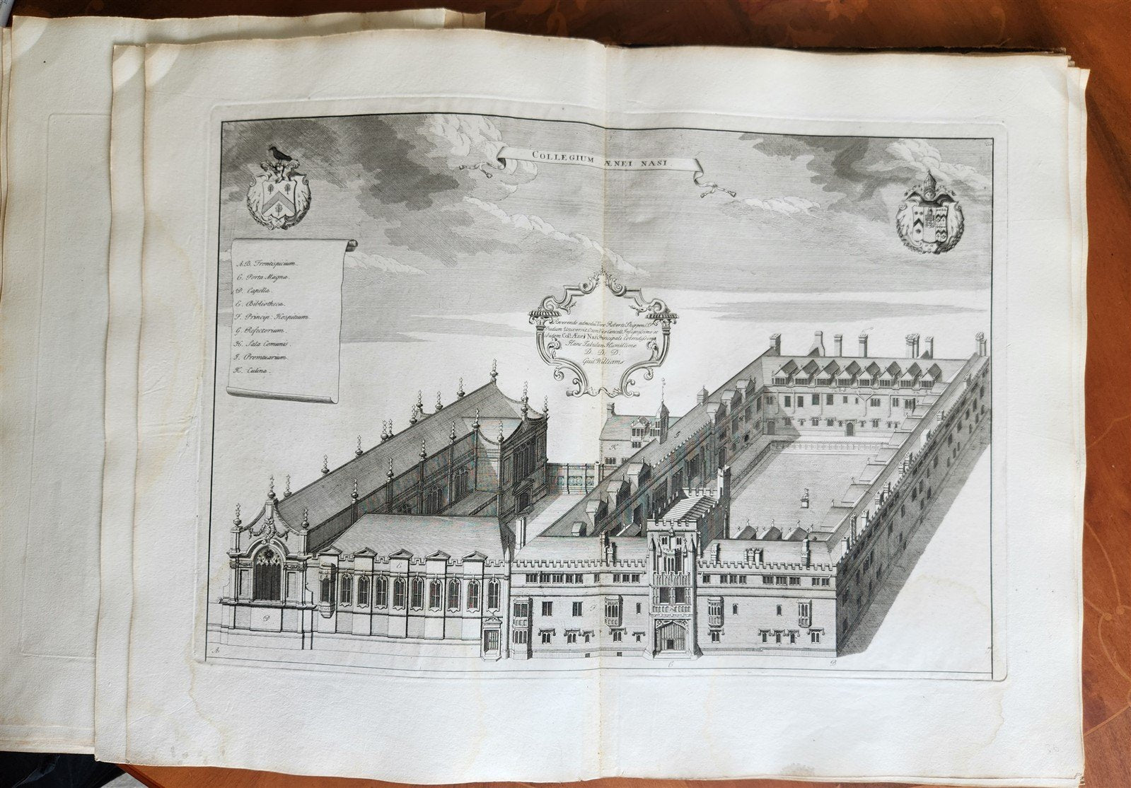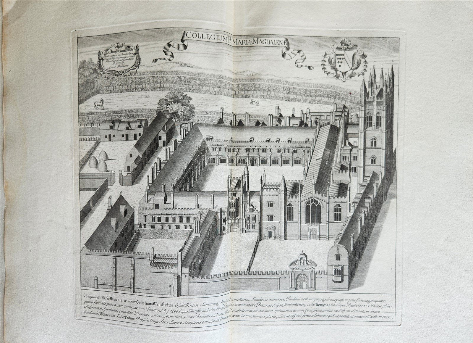 The engravings are in the style of David Loggan's Oxonia Illustrata.