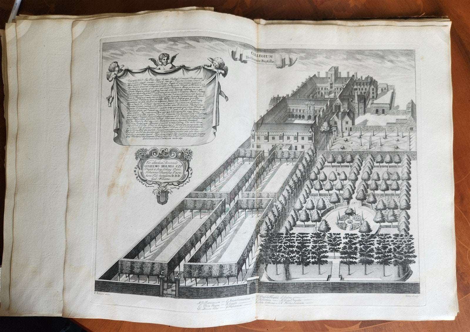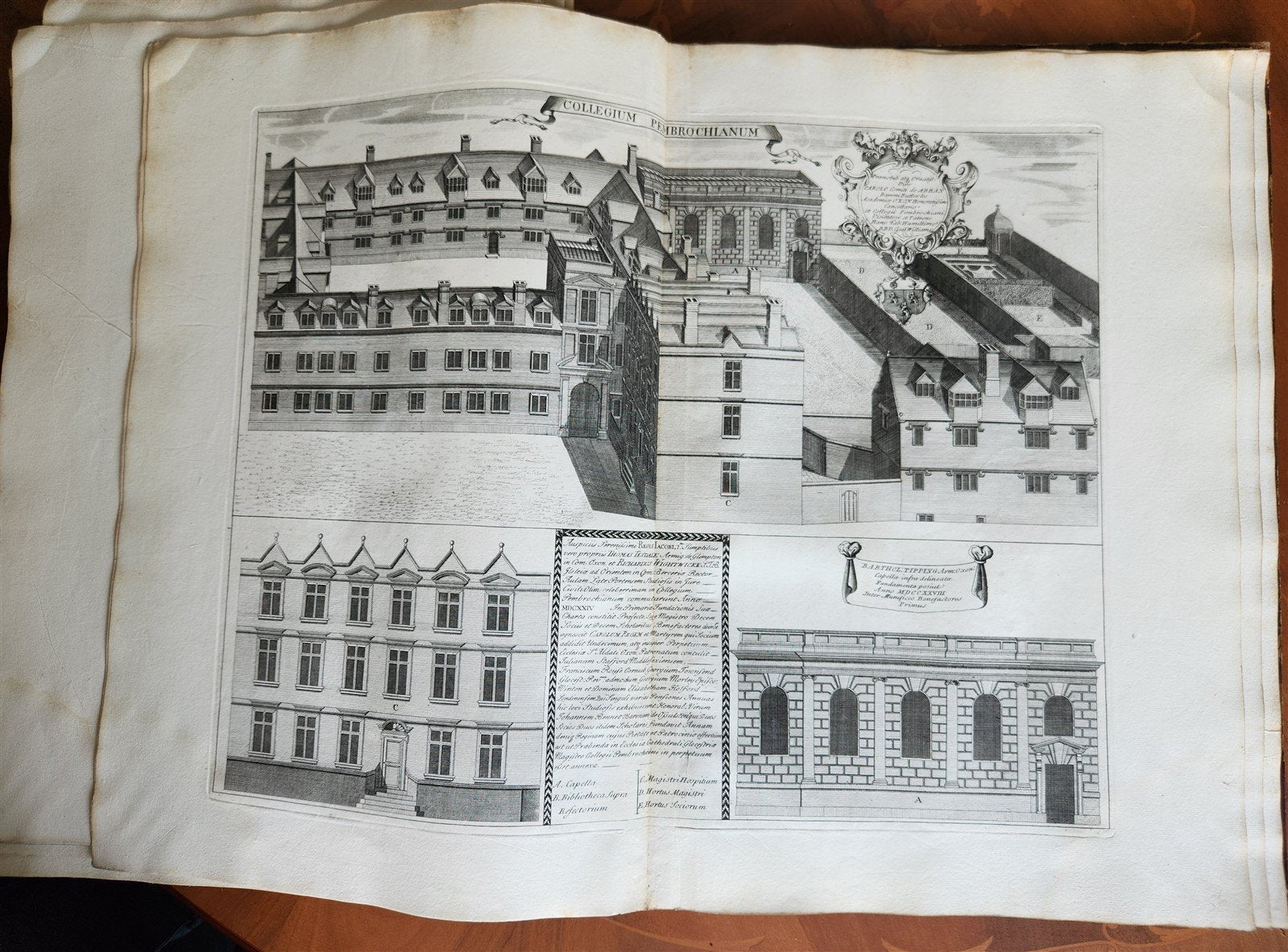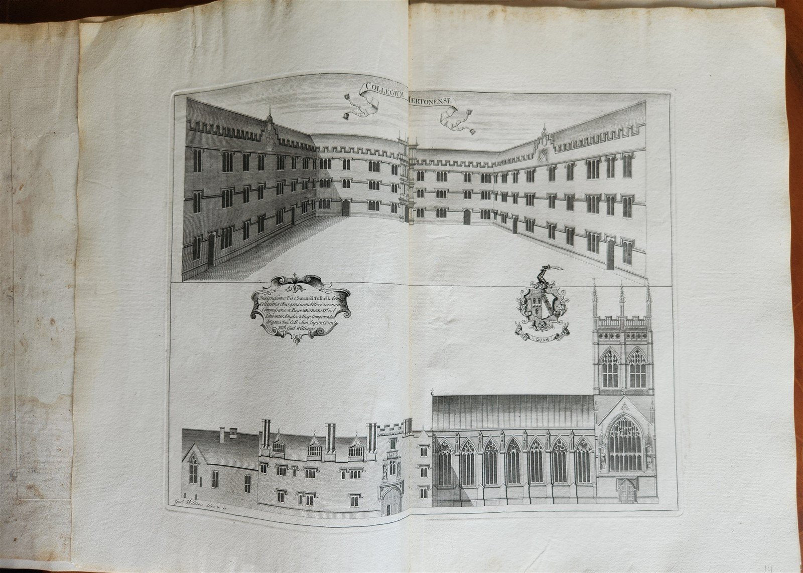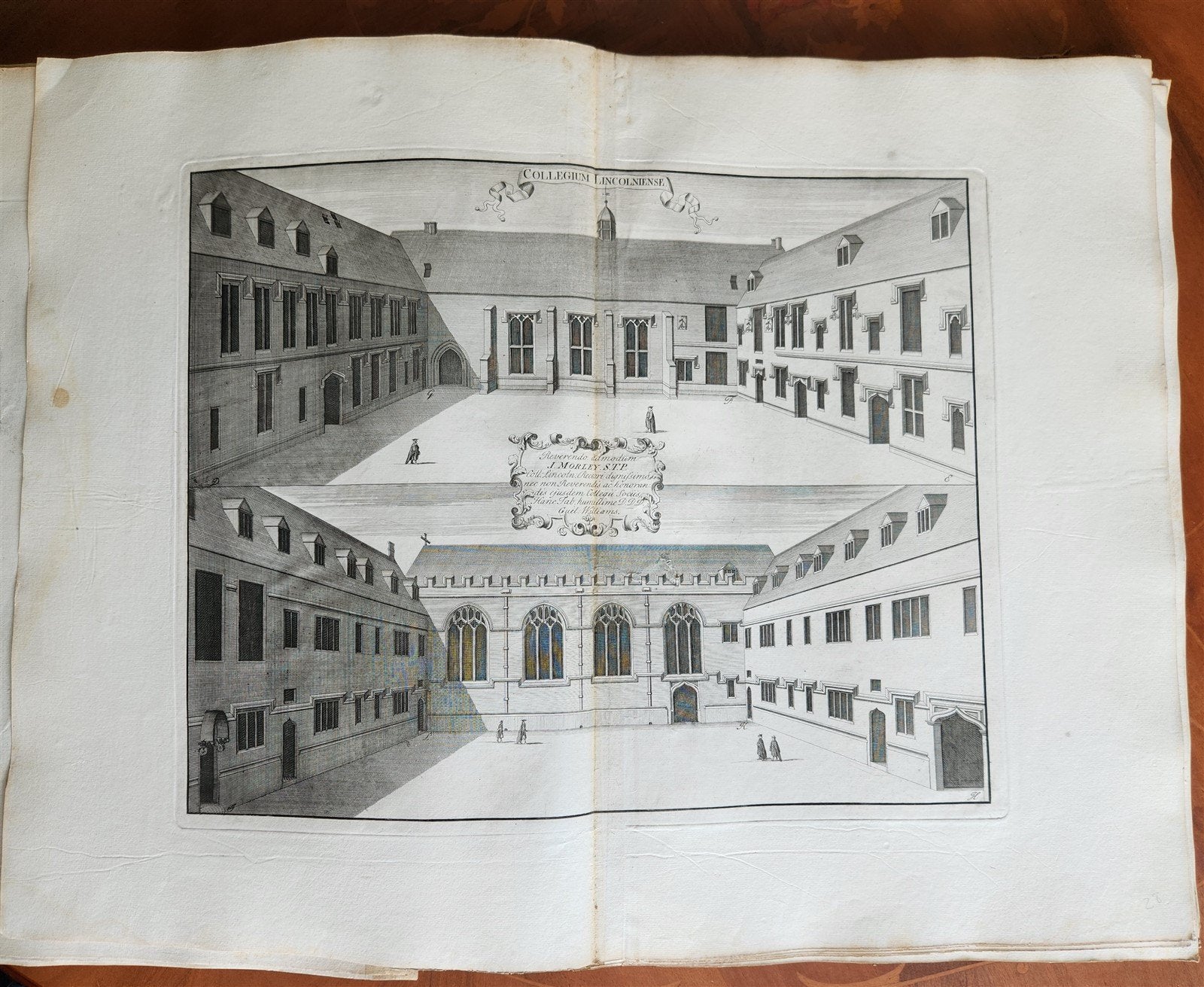 The engravings are in the style of David Loggan's Oxonia Illustrata.
