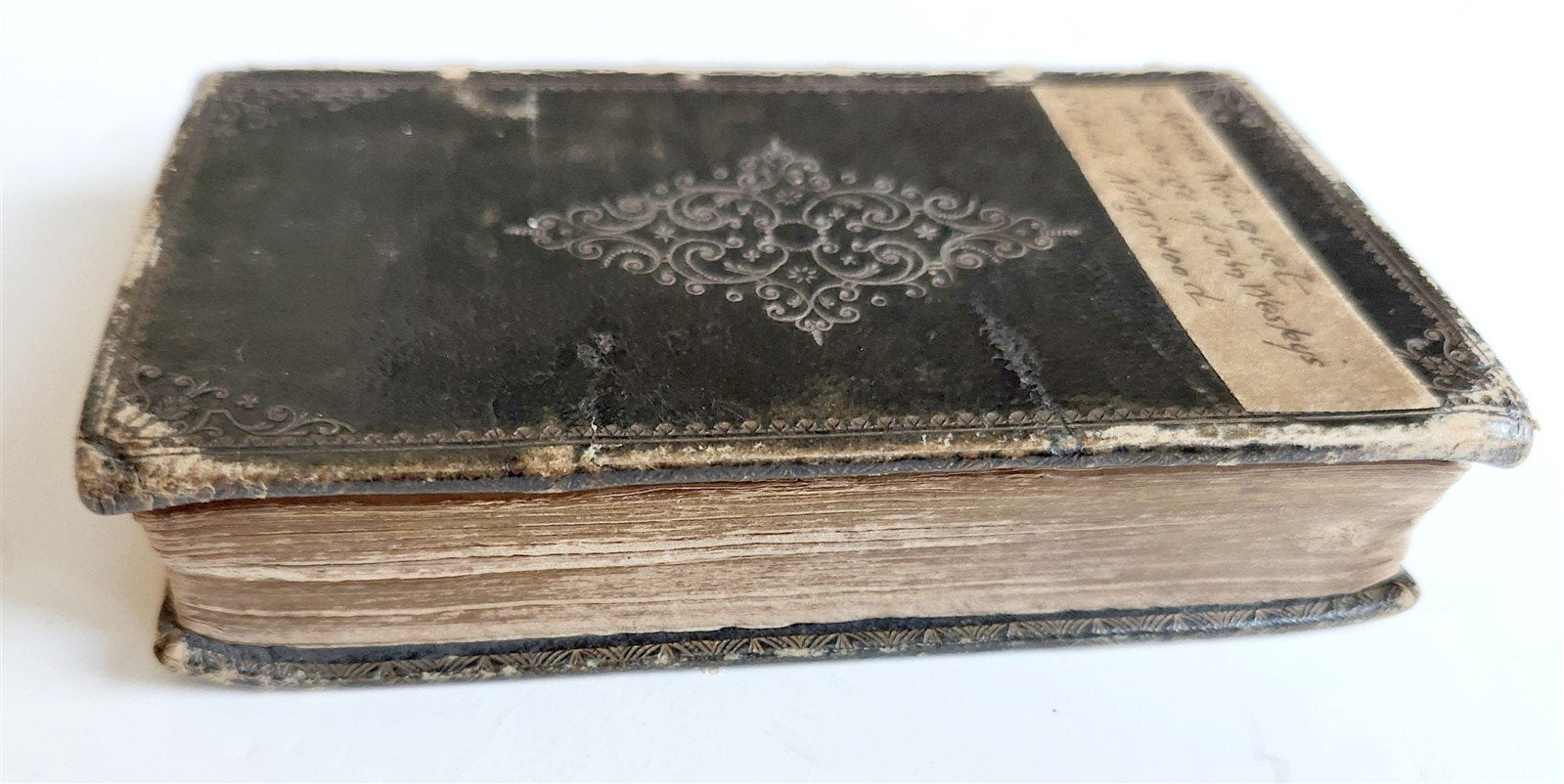 worn at head of spine, extremities rubbed,