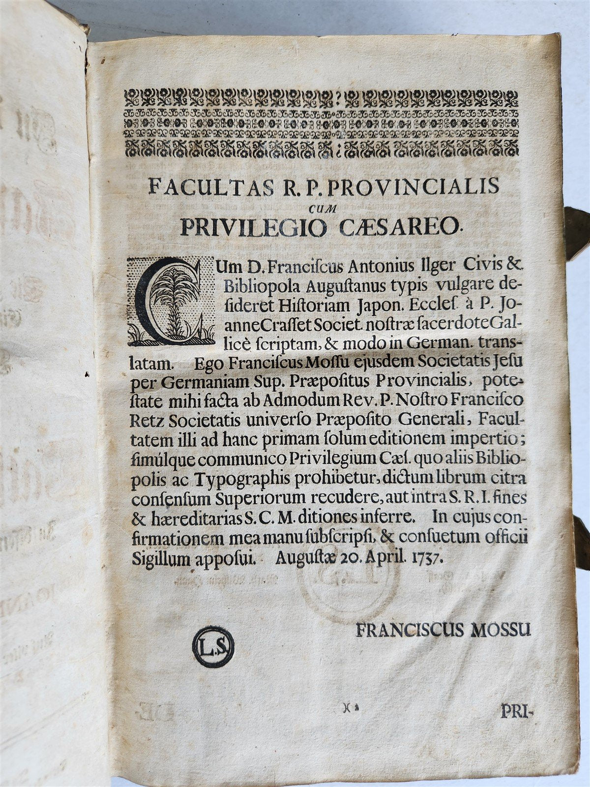 First German edition of this history of the Jesuit mission in Japan, with information about the country, its inhabitants, customs, and traditions.