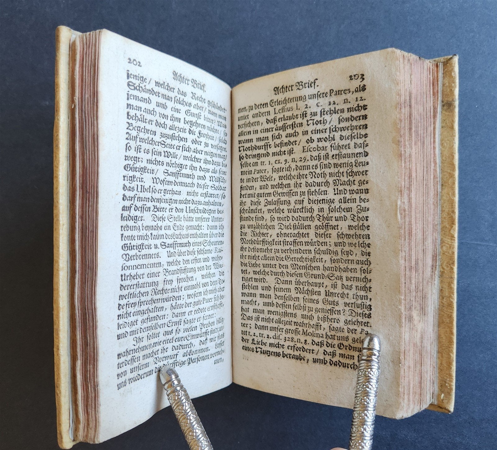 1740 BLAISE PASCAL LETTERS in GERMAN antique PIGSKIN BOUND w/ WITCHCRAFT THEME