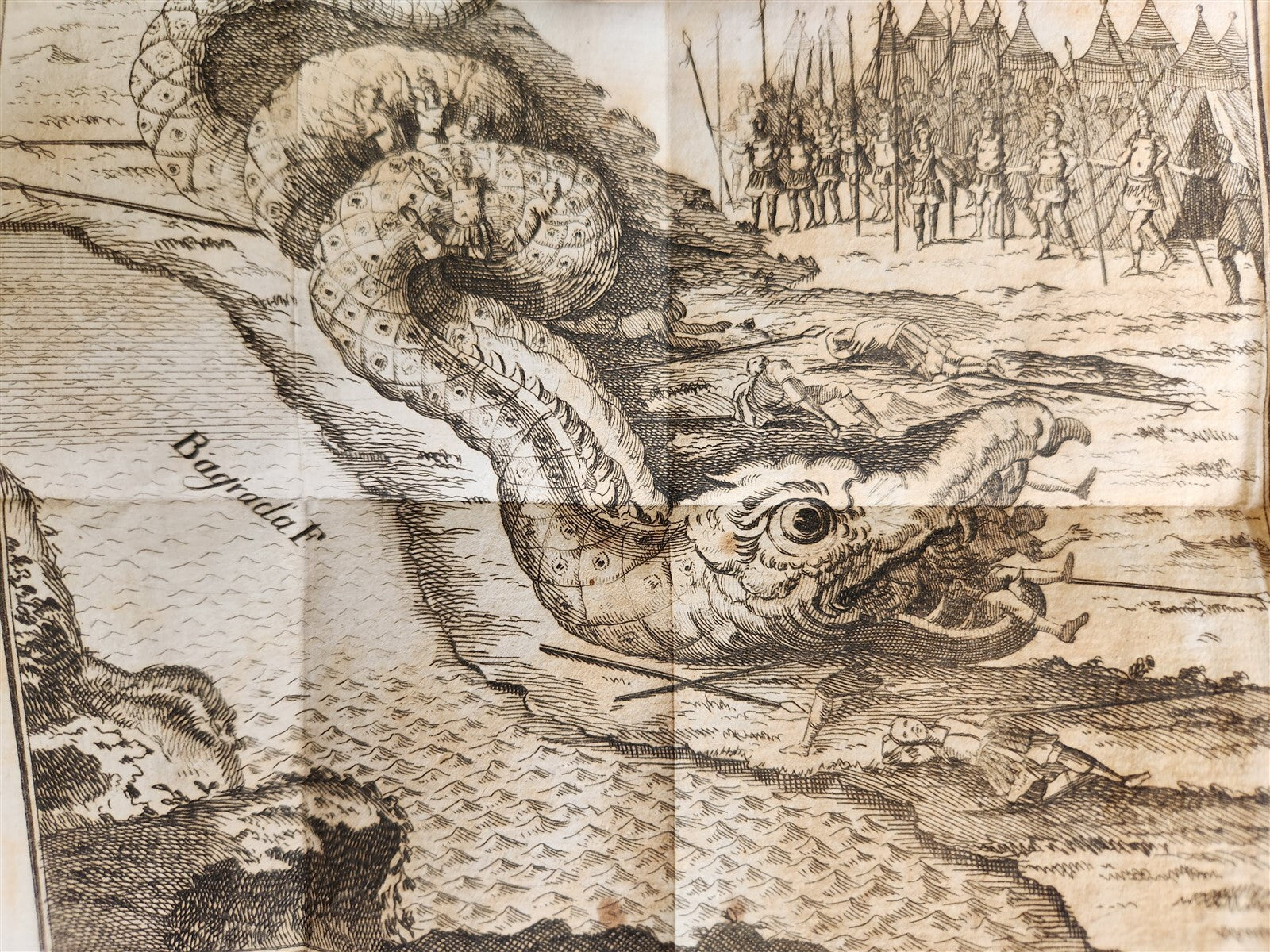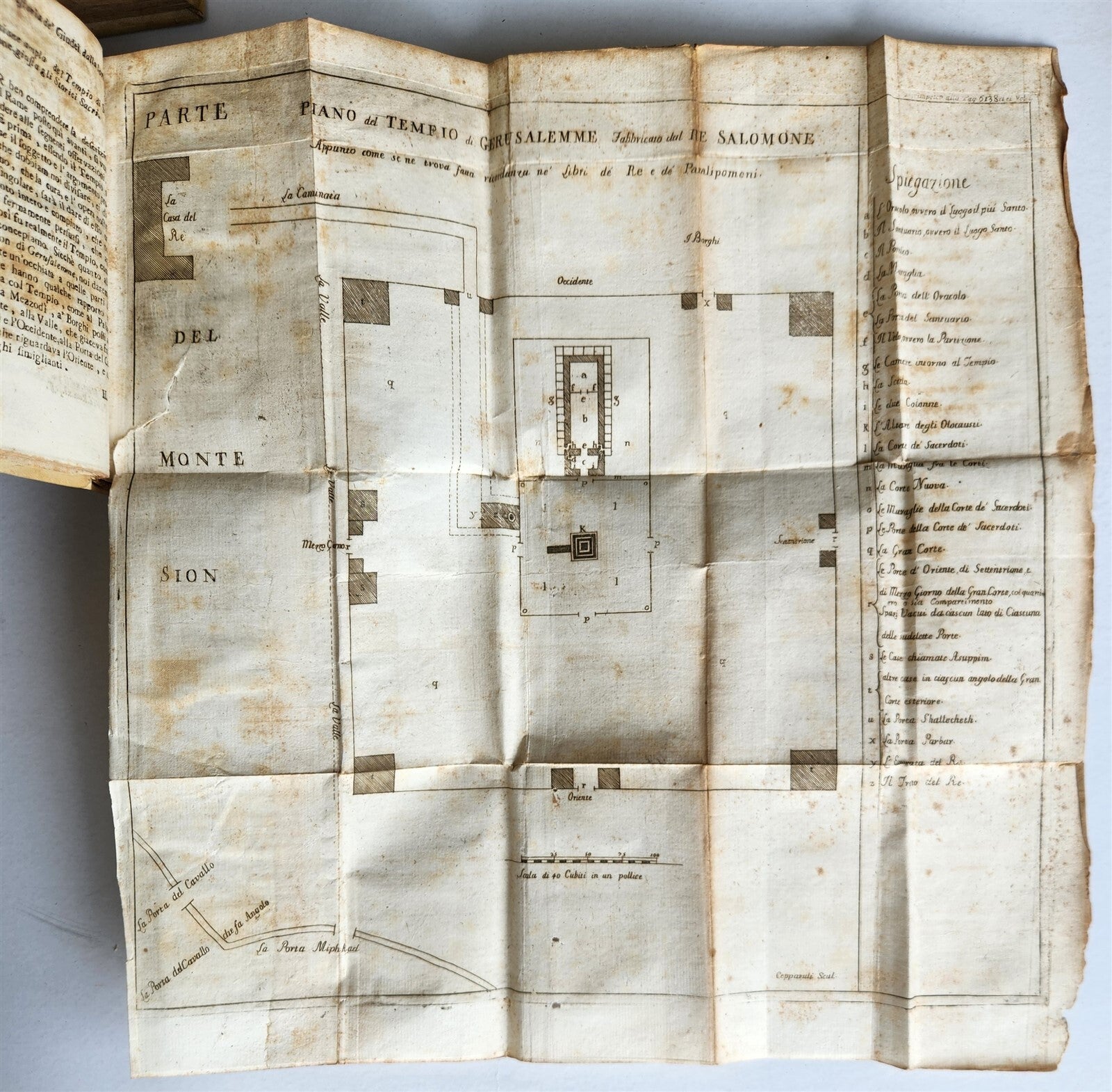 Copperplate typographic mark on the frontispiece of the first part of volume IV, some copperplate plates of folded maps and views