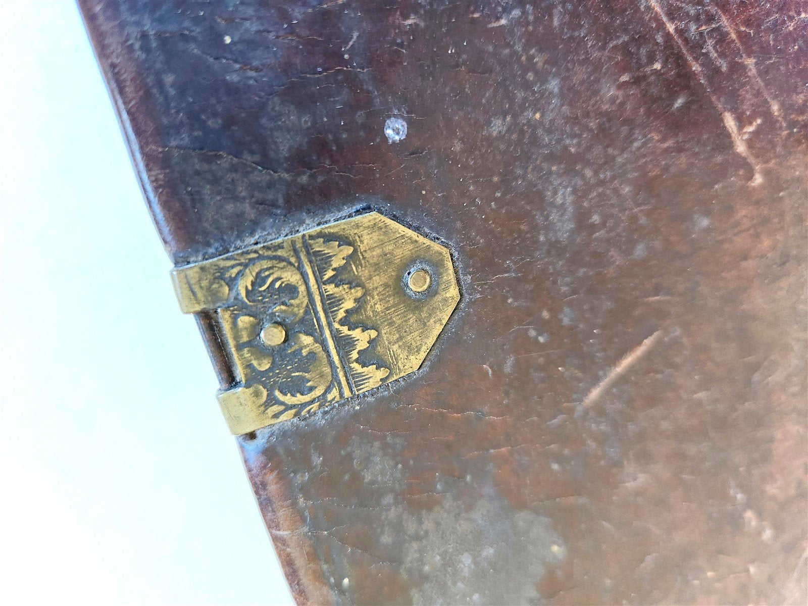 Original leather binding over wooden boards, spine with raised bands, lacks clasps