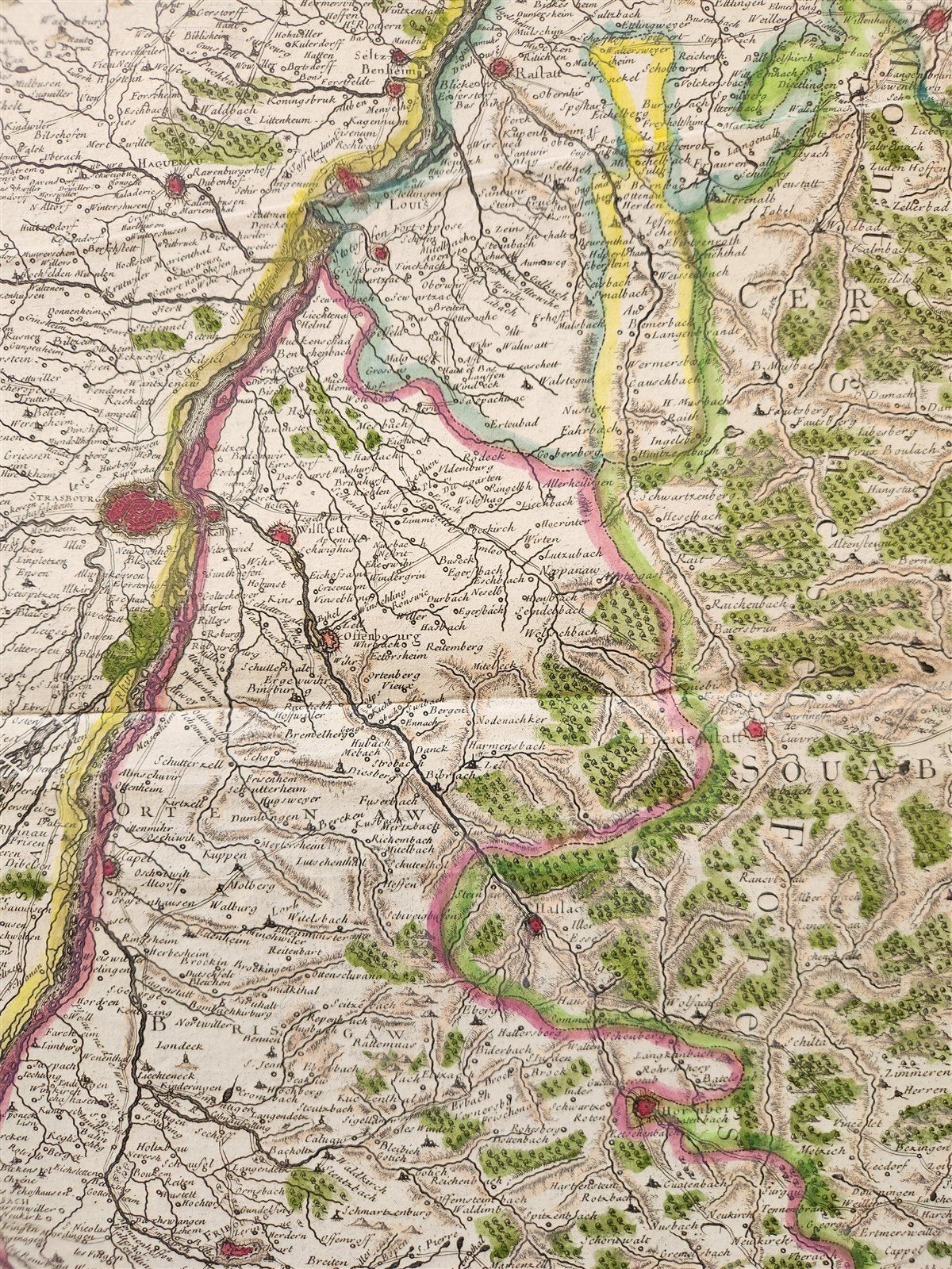 1743 FRENCH MILITARY antique MAP antique THEATRE la GUERRE en ALLEMAGNE FRANCE