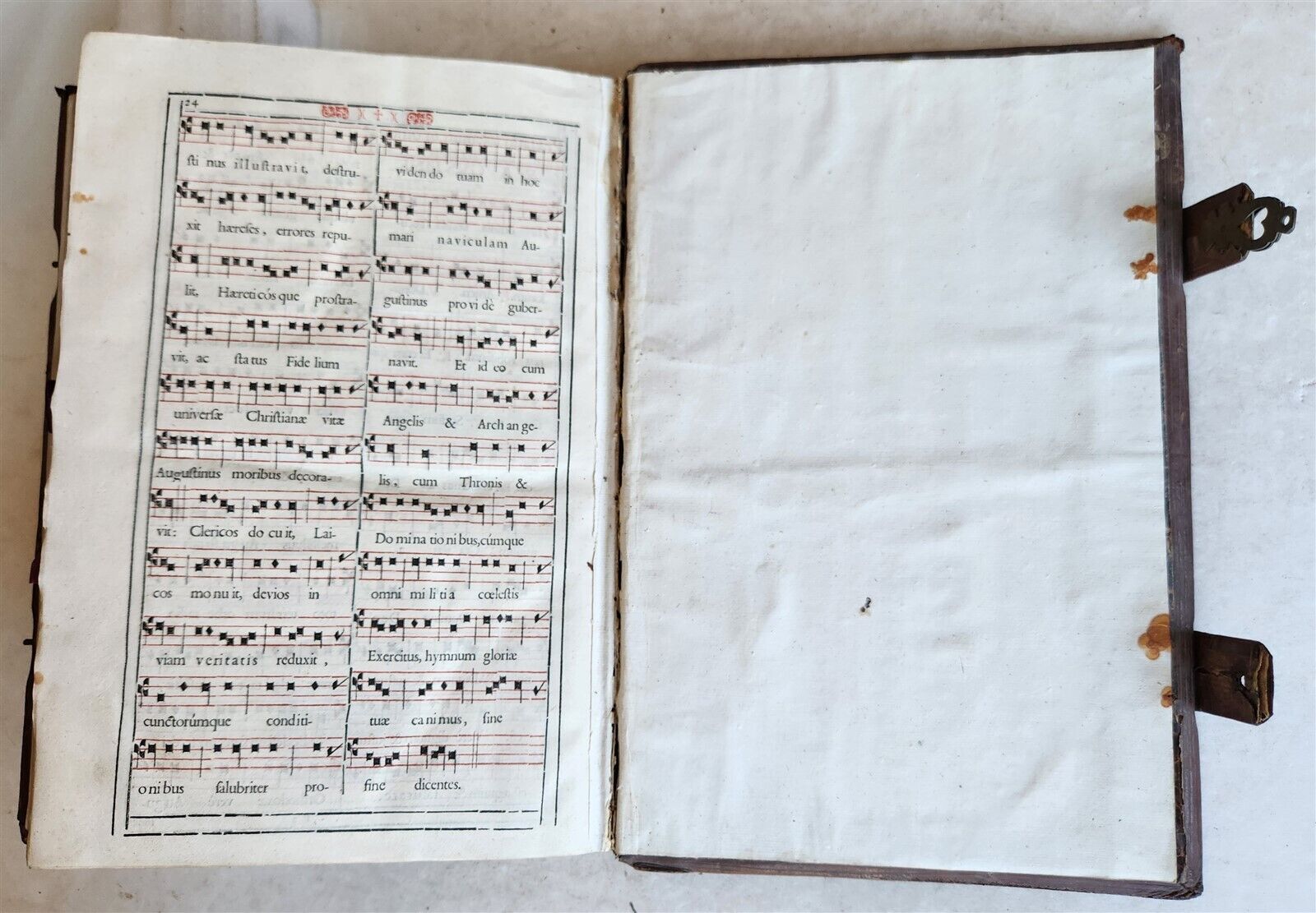NOVUM MISSALE ROMANUMex decreto... Pii V... Clementis VIII et Urbani VIII. Augsburg, Veith; 1743With engraved title page and some large-leaf copperplate engravings. 20 pages, 524, CIV pages, 2 pages. Bound with: Proprium FestorumFreising; 1744 With engraved title page, 38 pages, 2 pages. Bound with:Missae, Propriae Sanctorum... Augsburg, Gruber; 1727. With engraved title page, 24 pages. folio: 9 by 13 1/4 inchesOriginal leather binding over wooden boards, decorated in gilt, spine with raised bands, lacks clasps, gilt edgesSome wear of leather, dampstain to the lower inner corner of part of the leavesText in Latin===========================