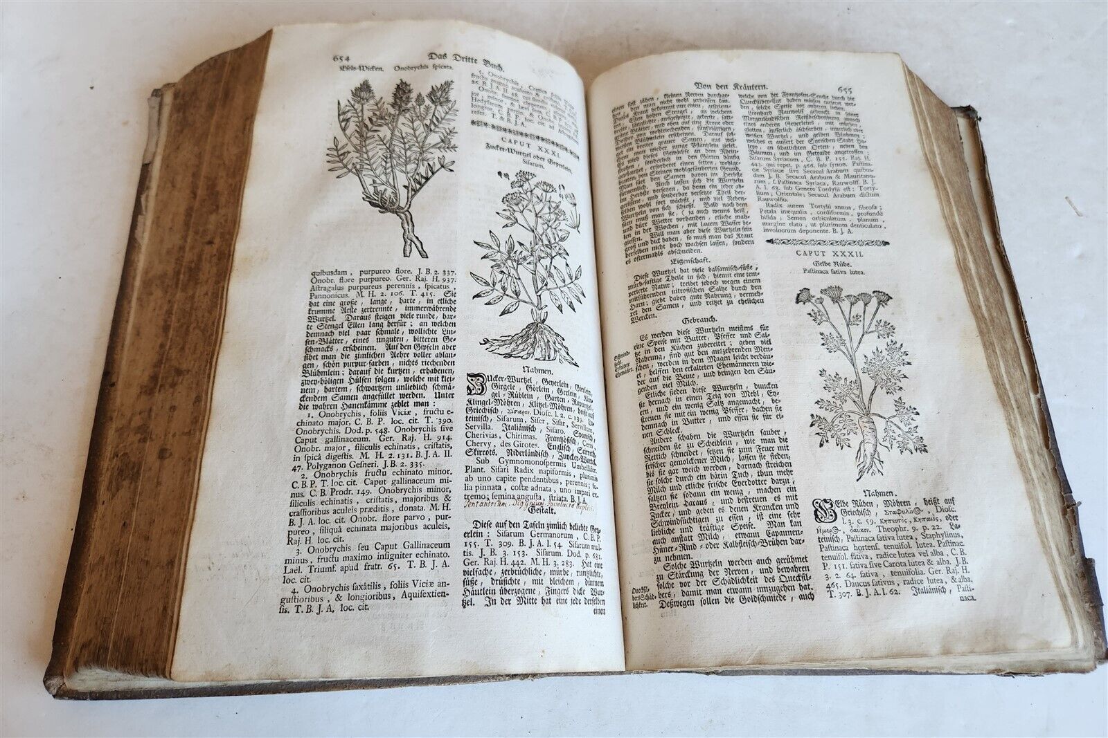 1744 THEATRUM BOTANICUM ILLUSTRATED GERMAN HERBAL antique PIGSKIN BOUND FOLIO