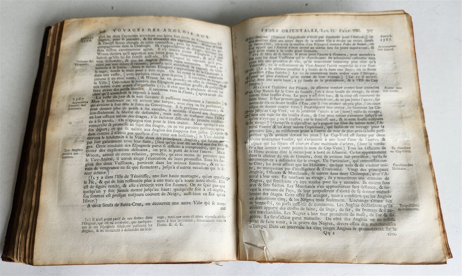 Prevost, A.F.Histoire generale des voyages, ou nouvelle collection... Volume IA La Haye, Chez Pierre De Hondt; 1747Size 7.5 by 10"LACKS ALL PLATESOriginal leather binding, spine with raised bandsDedicated to travels of Portuguese and English men to East IndiesSOME WEAR, MINOR FOXING, FEW LEAVES ARE DETACHED, LACKS PLATESText in French==================================================Please see my other auctions Thank You