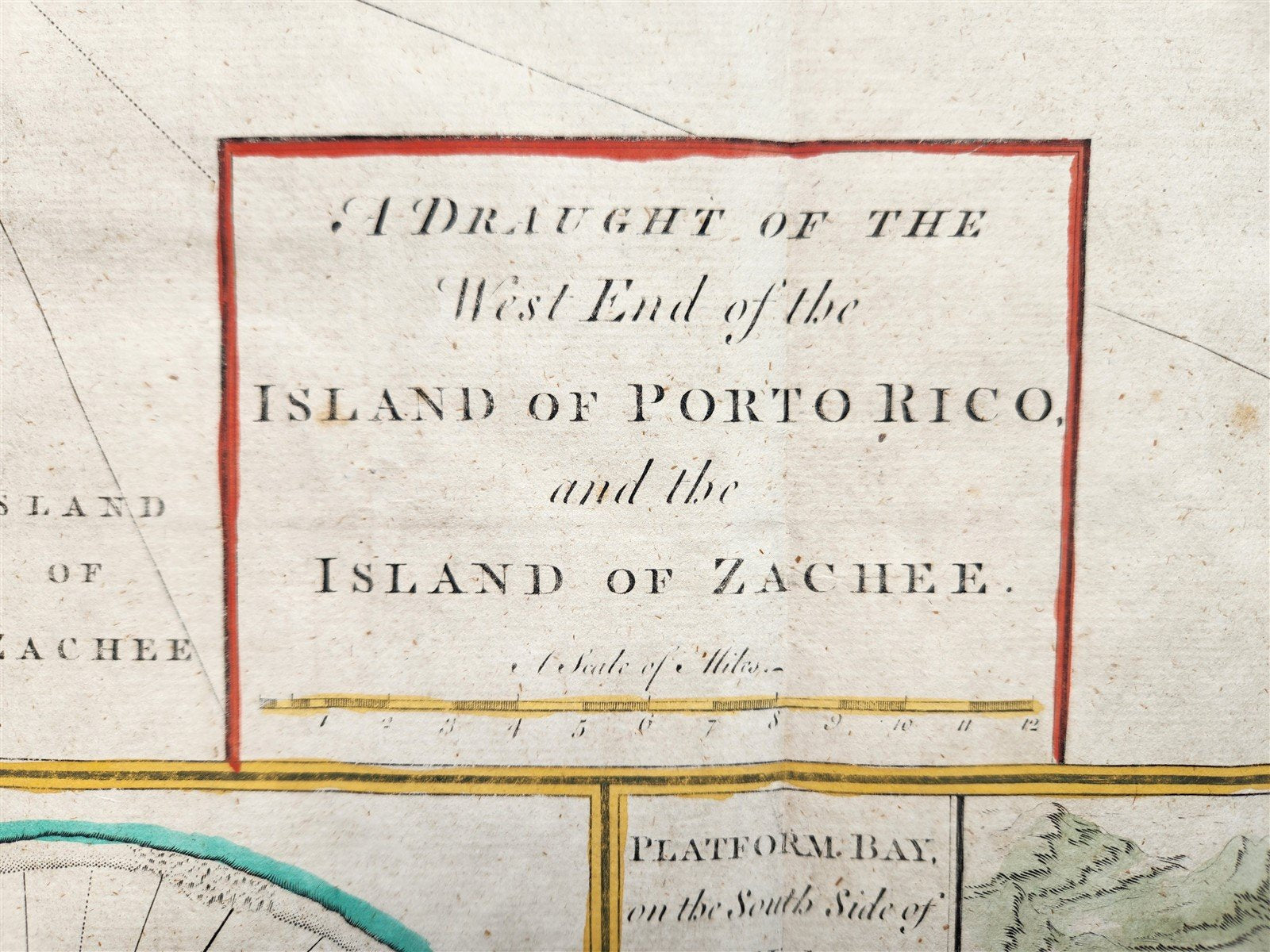 1750s MAP WEST END of the ISLE of PORTO RICO & ISLAND of ZACHEE antique 19x24"