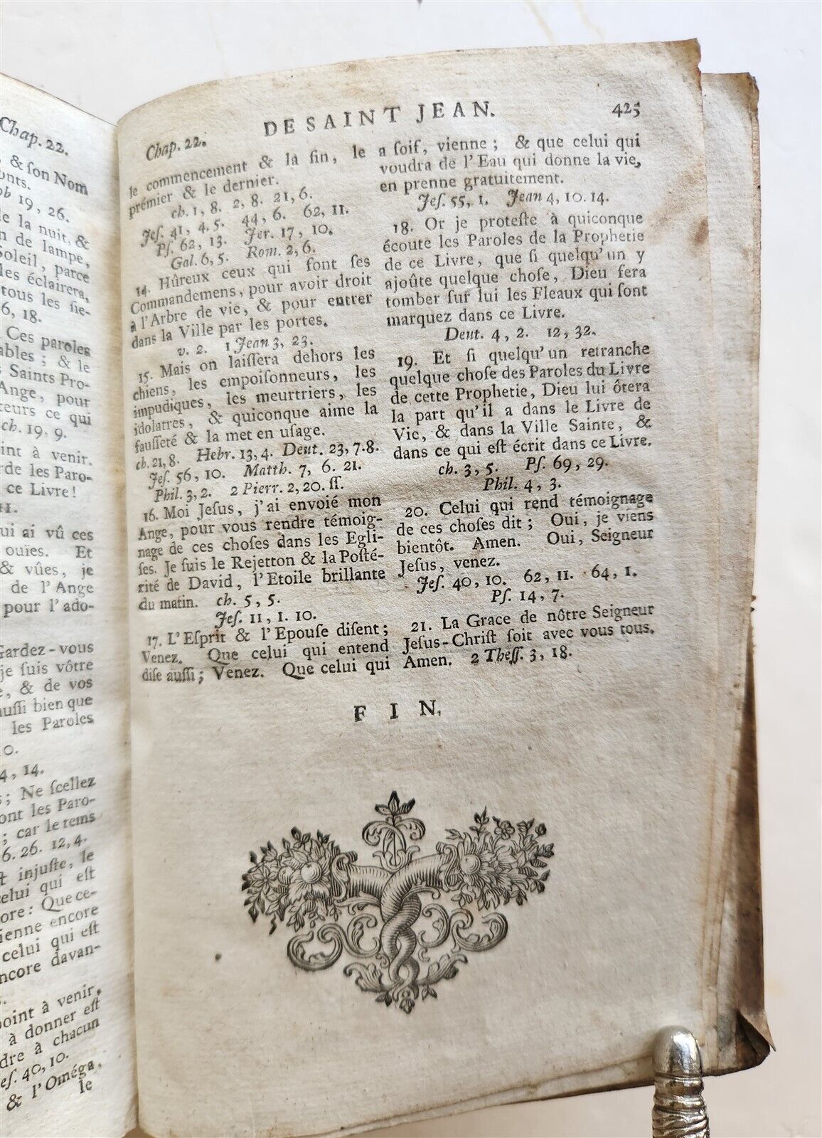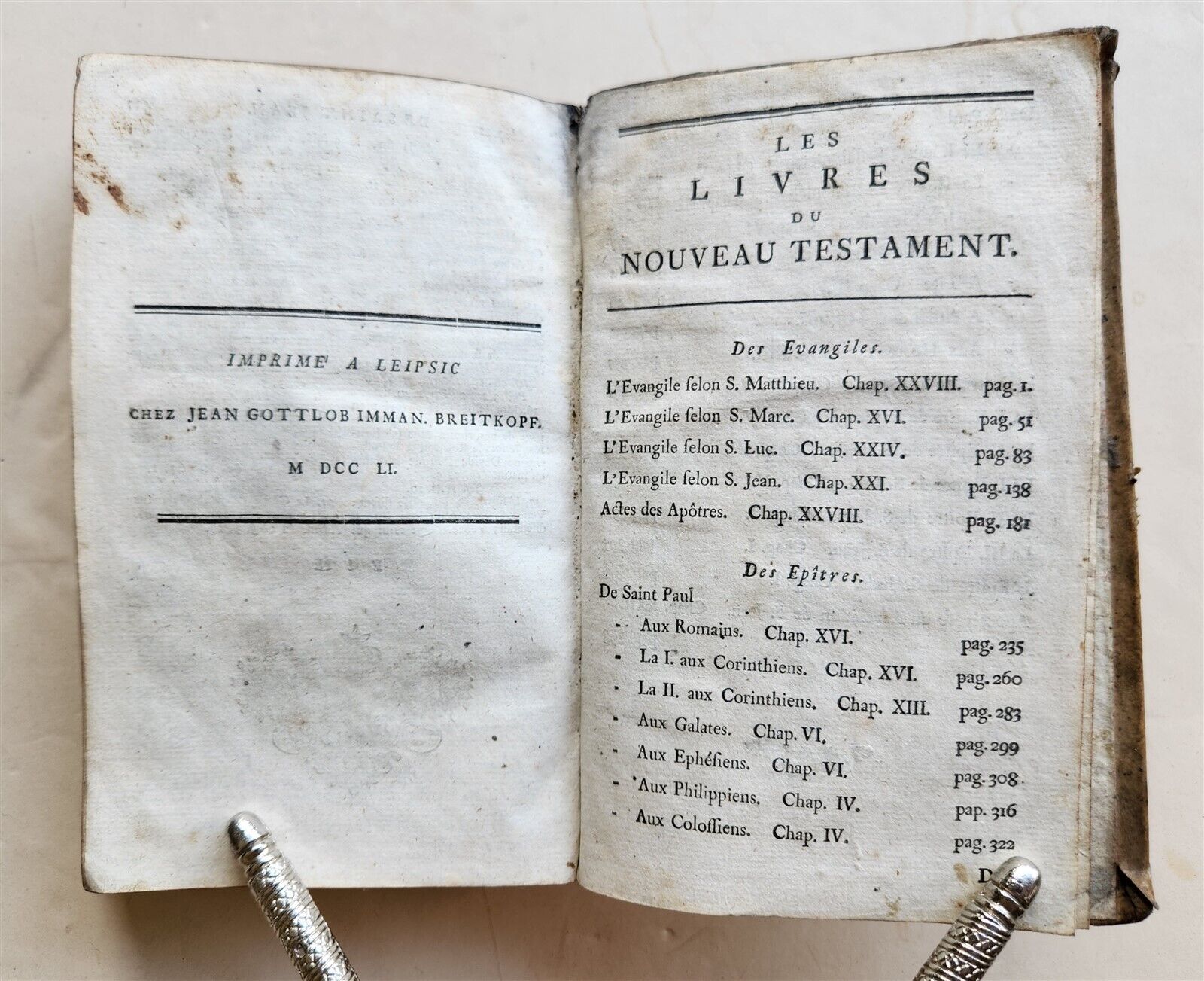 1751 BIBLE in FRENCH NEW TESTAMENT antique VELLUM BINDING