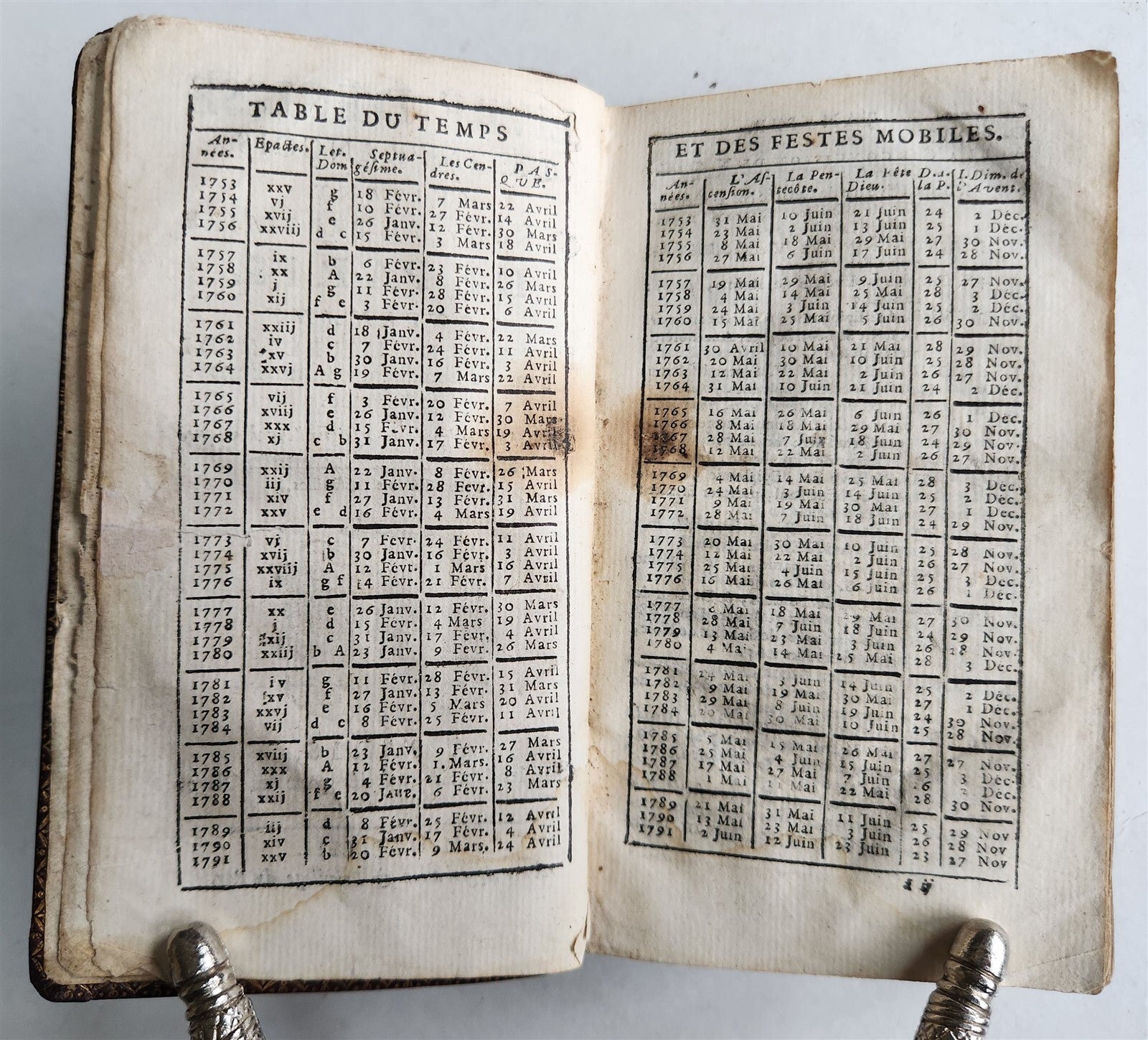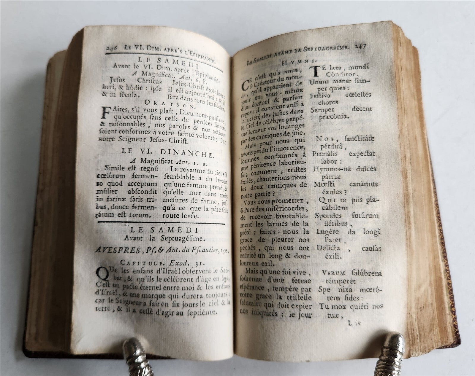 1753 BREVIARY in FRENCH & LATIN antique DECORATIVE MOROCCO BINDING