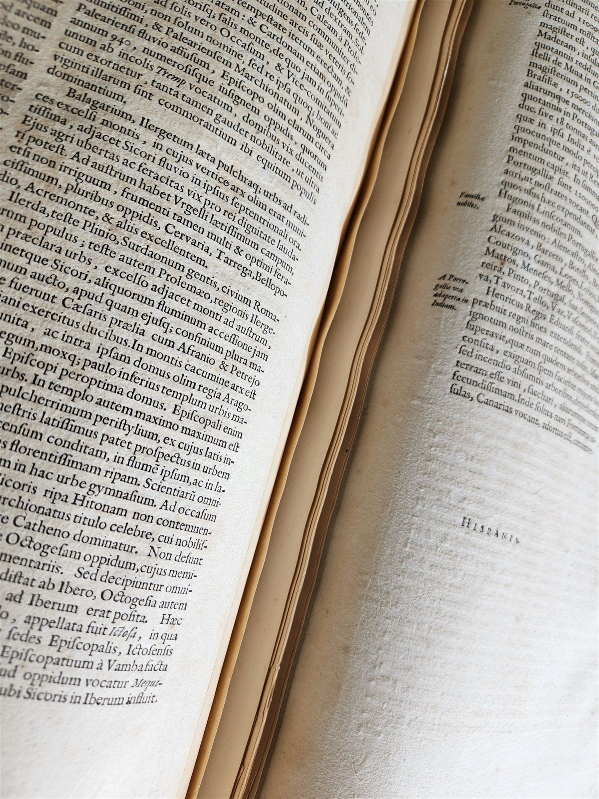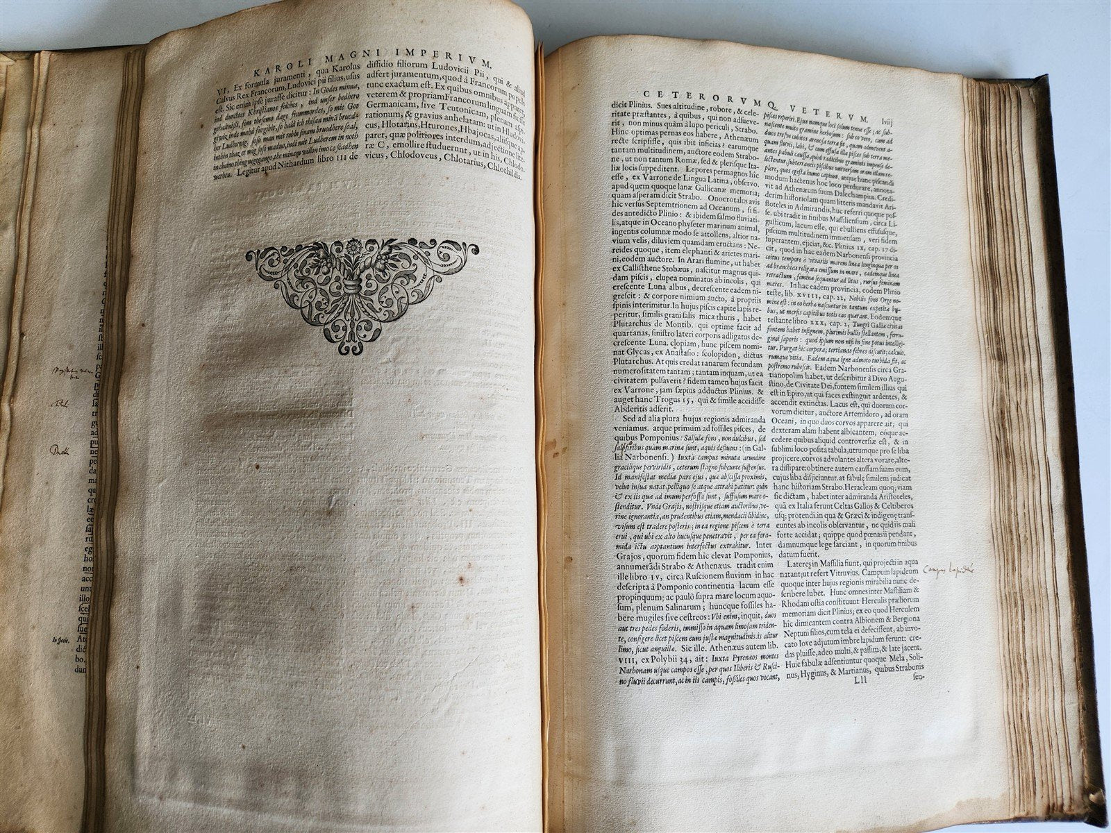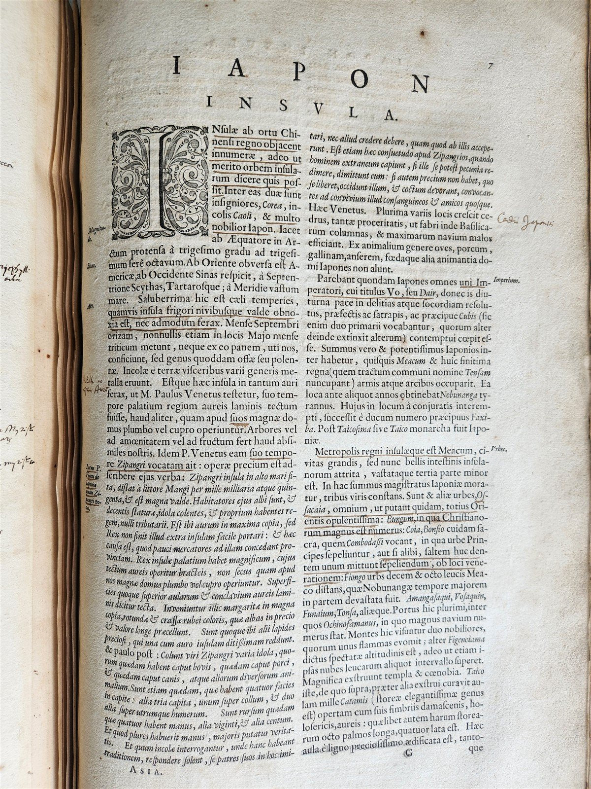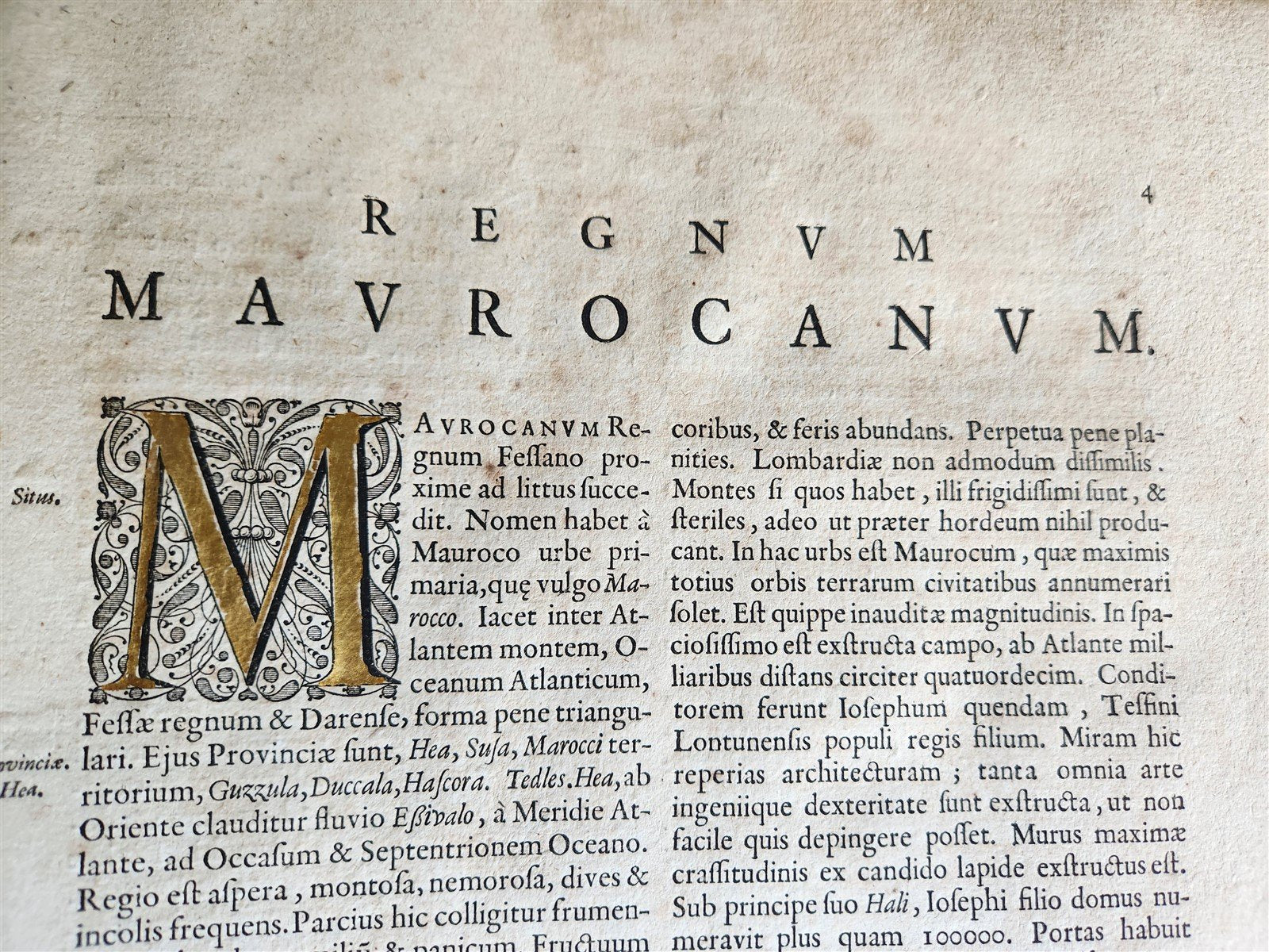 WIth some leaves left with descriptions of Gallia, Belsia, Normannia, Burgindia, Benearnia, Belloiolesii, Sabaudia, Karoli Magni Imperium, Hispania, Catalonia, Algarbia, Andalusia, India, Iapon (Japan), Tartaria, Persia, Palaestina, Africa, Regnum Maurocanum, America, Nova Hispania, Anglia Nova, Venezuela