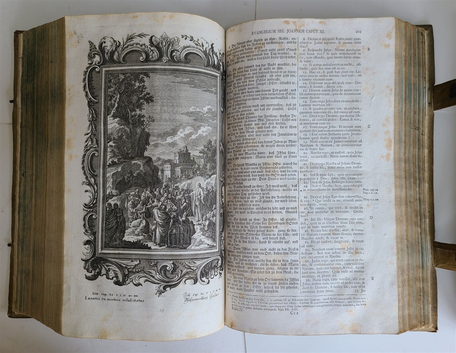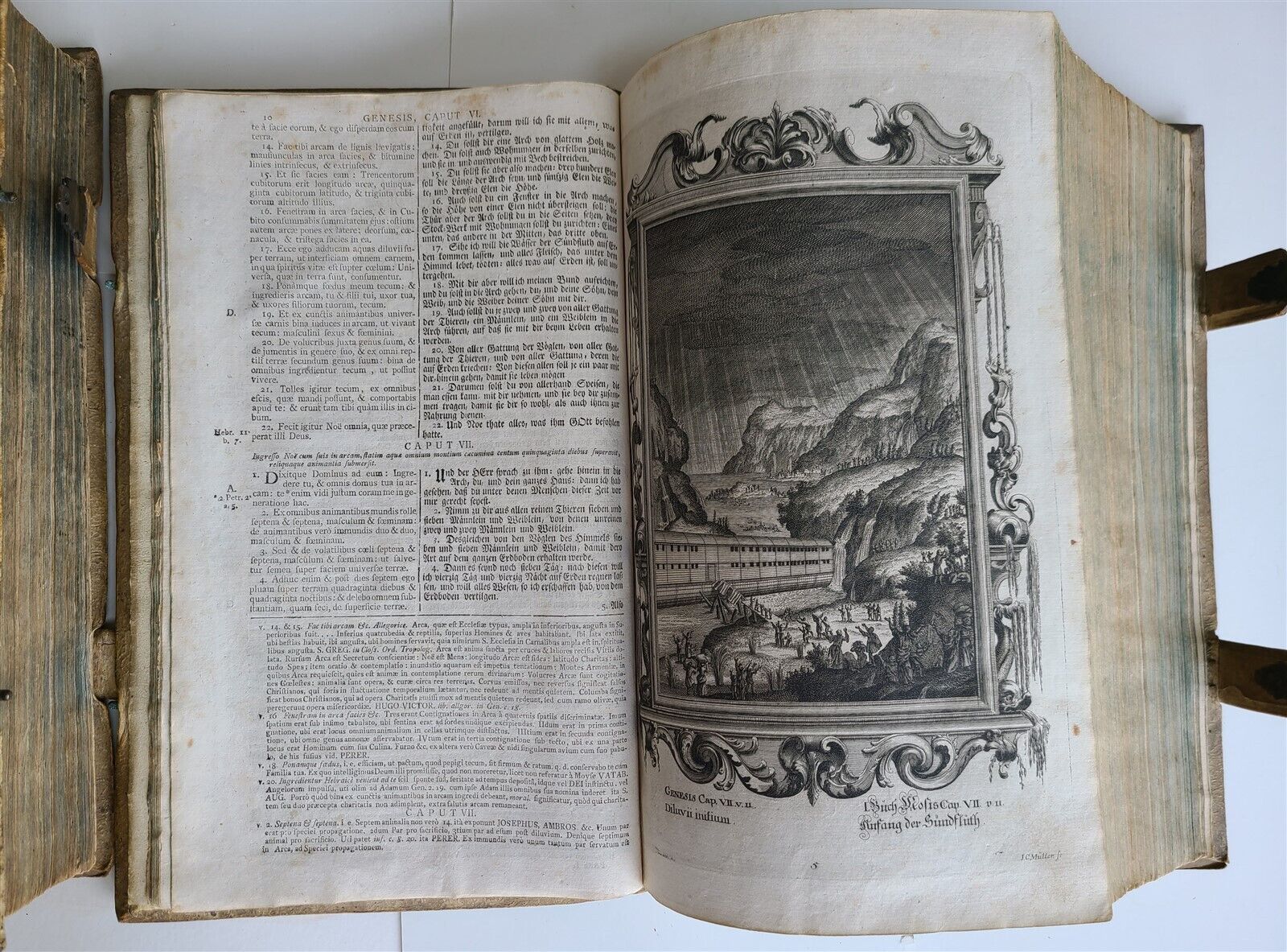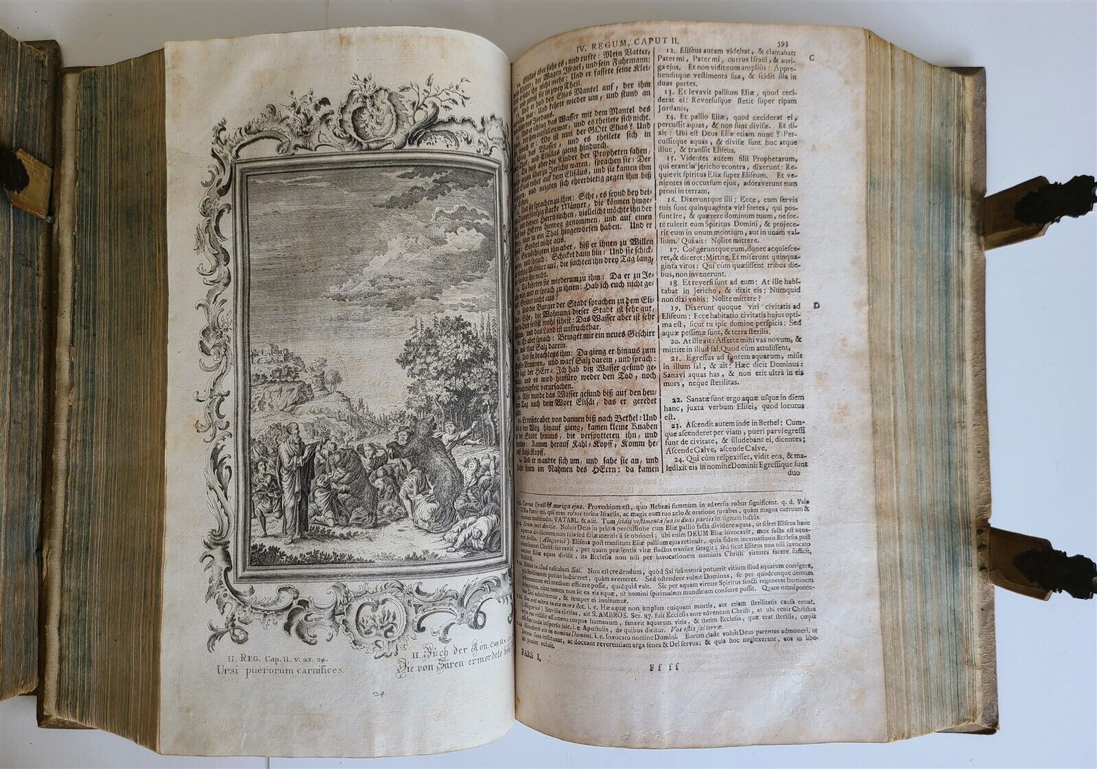 1770 BIBLE in GERMAN & LATIN ILLUSTRATED 2 FOLIO VOLUMES antique PIGSKIN BINDING