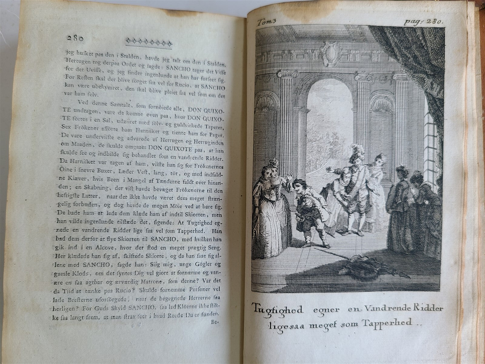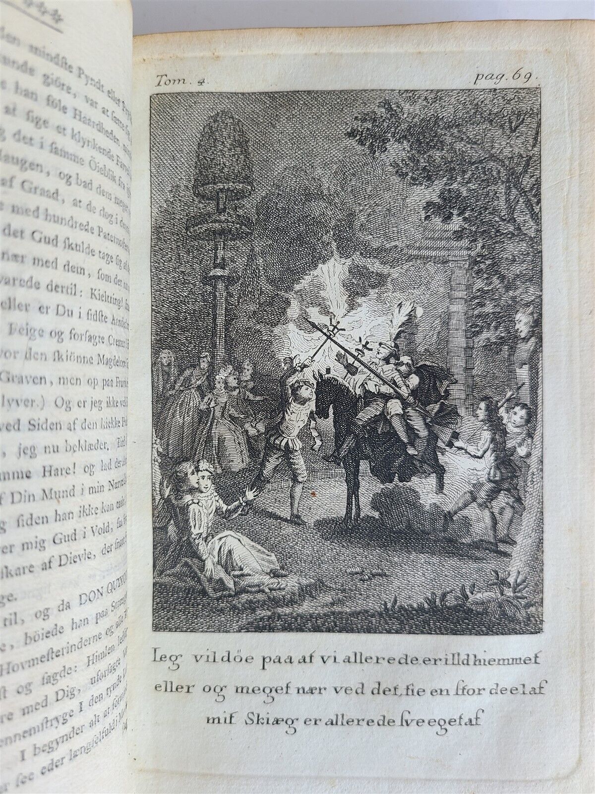 1776-77 4 vols DON QUIXOTE by CERVANTES 1st DANISH ED. antique ILLUSTRATED RARE