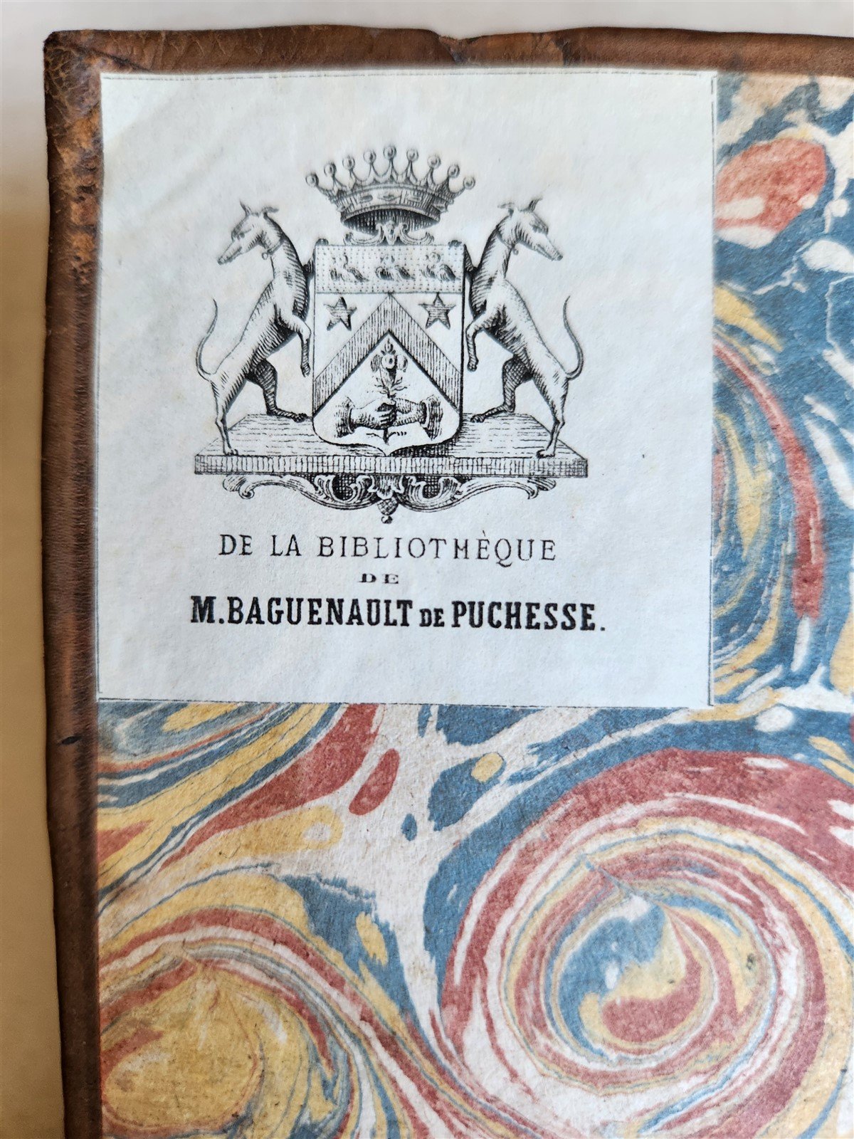 Original leather, spine with raised bands, decorated in gilt, marbled endpapers, with bookplate