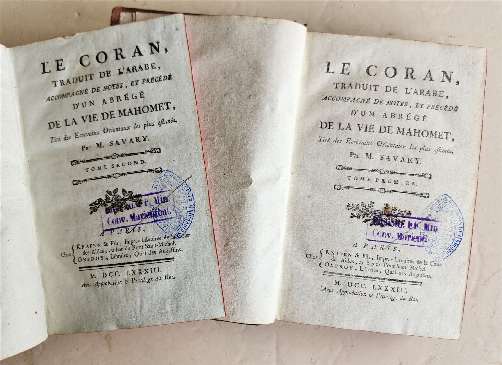 1783 KORAN in FRENCH 2 VOLUMES antique QURAN 1st EDTION by Claude-Etienne Savary