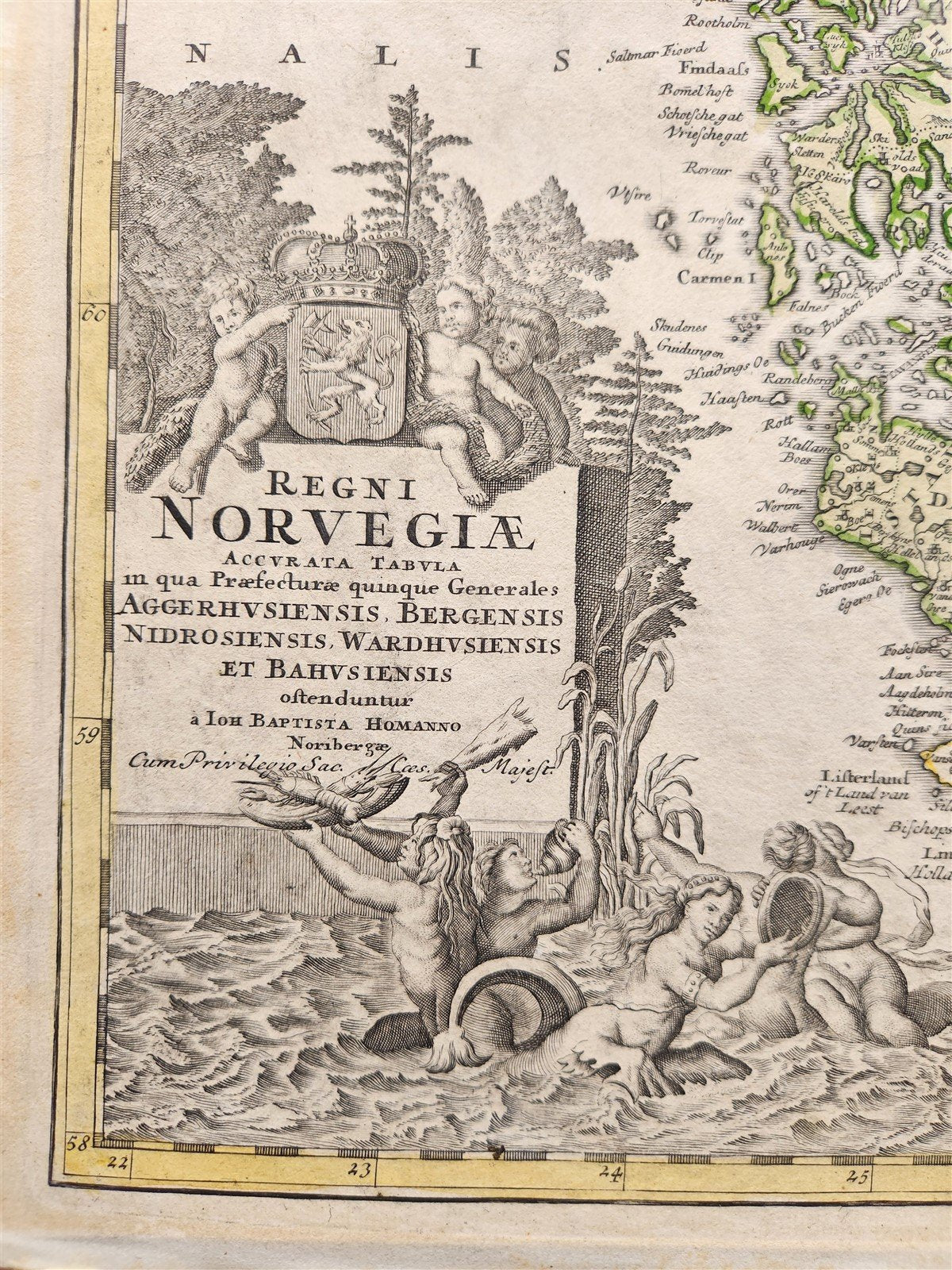 1788 NORWAY antique MAP REGNI NORVEGIAE by JOHANN HOMANN AUTHENTIC