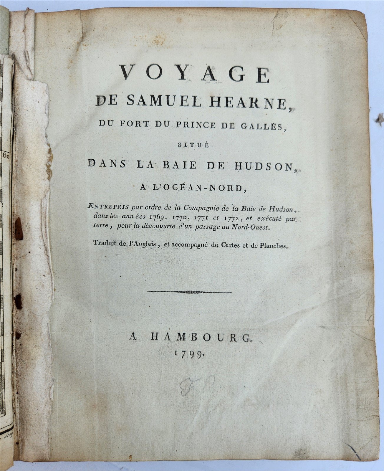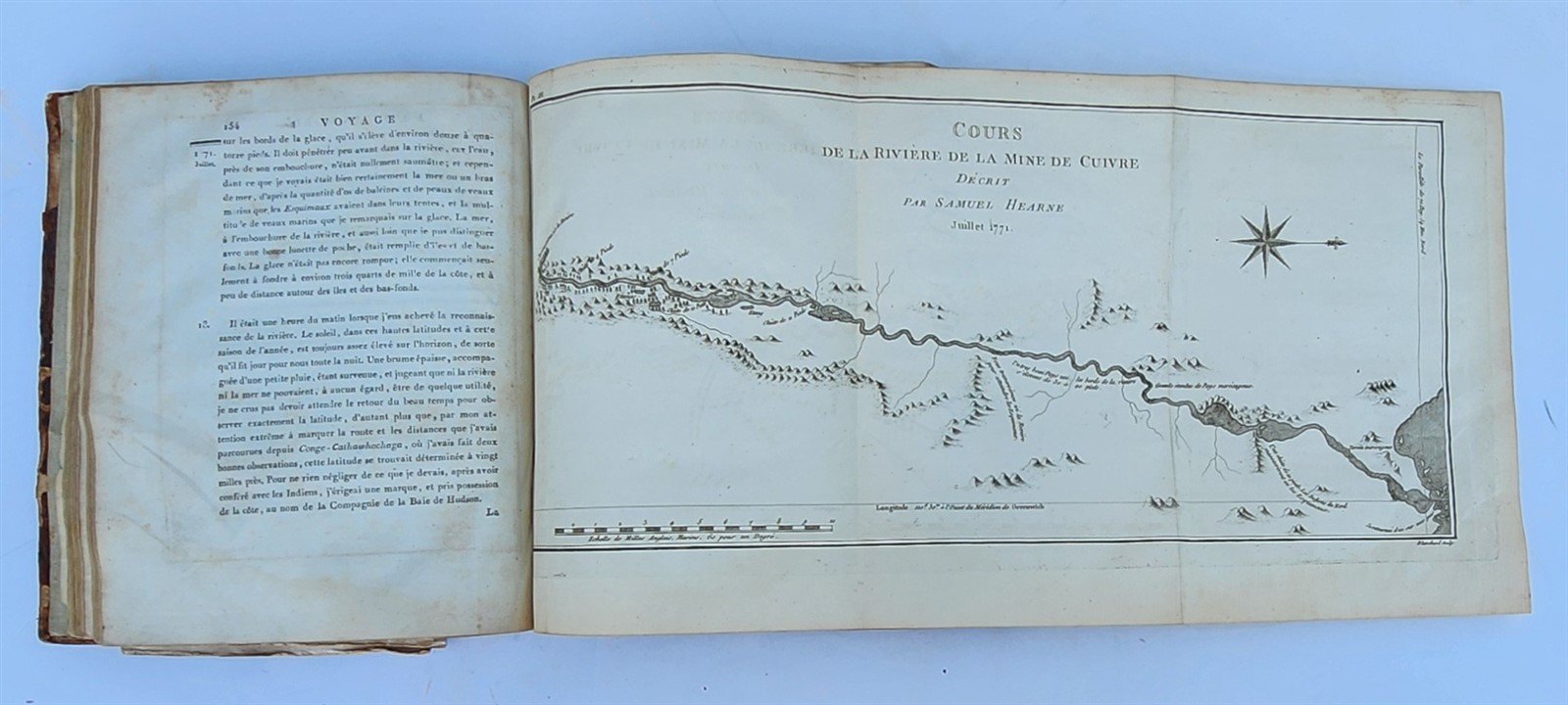 First French Edition, octavo issue. Account by the first white man to travel overland to the Arctic Ocean and the discoverer of Great Slave Lake. Hearne (1745-1792) was sent northward from Churchill to the behest of the Hudson's Bay Company, which had long been interested in investigating reports of copper mines to the north.