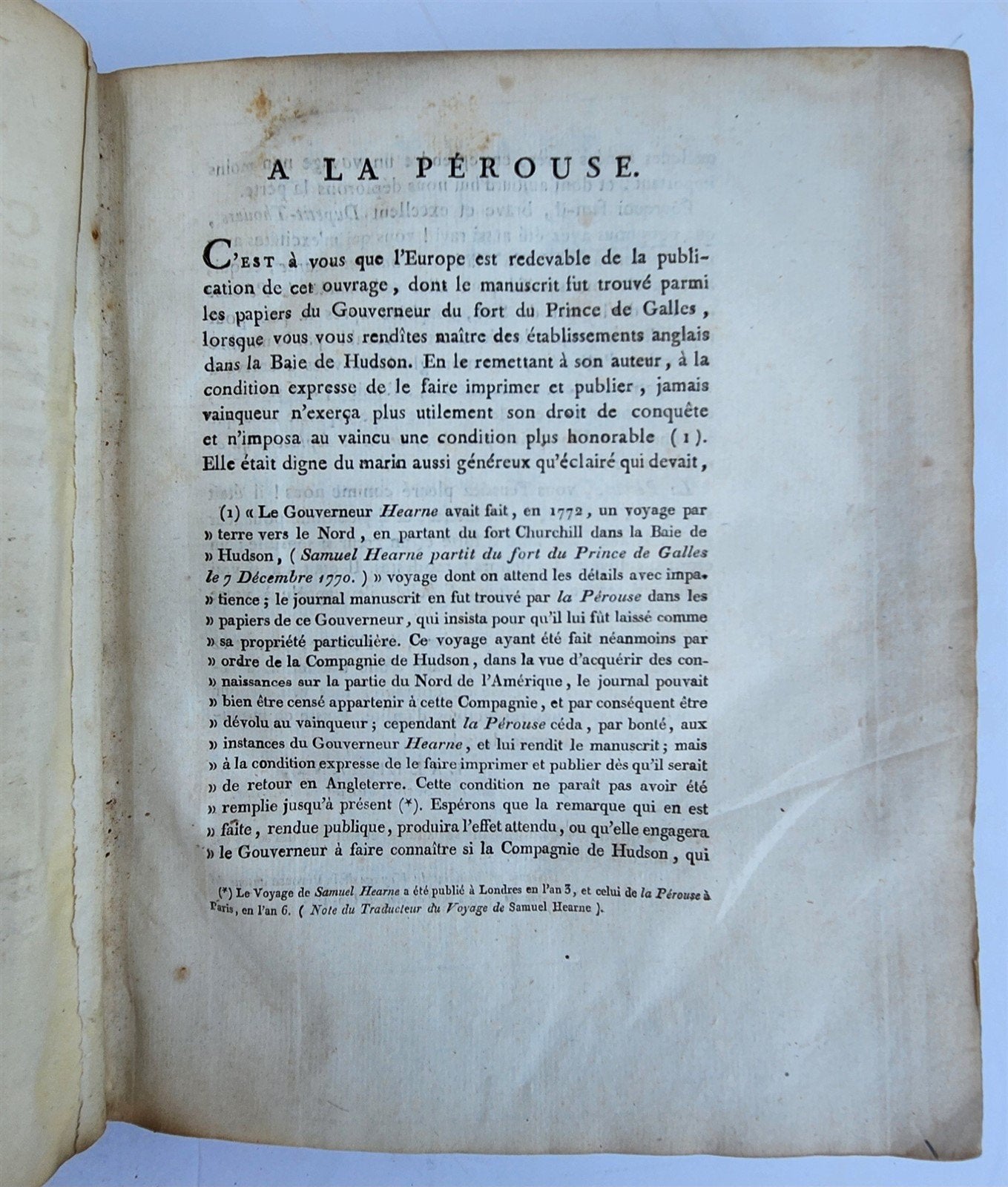 His travelogue has come down to us partly thanks to La Pérouse, who took Hearne prisoner at Prince of Wales Port in 1782.