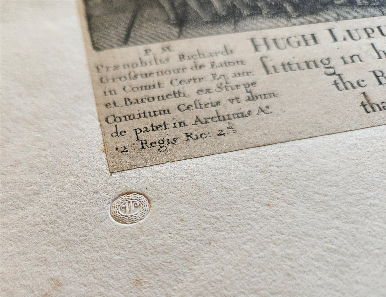 17th CENTURY ENGRAVING HUGH LUPUS'S COURT OF COUNTY-PALATINE of CHESTER antique