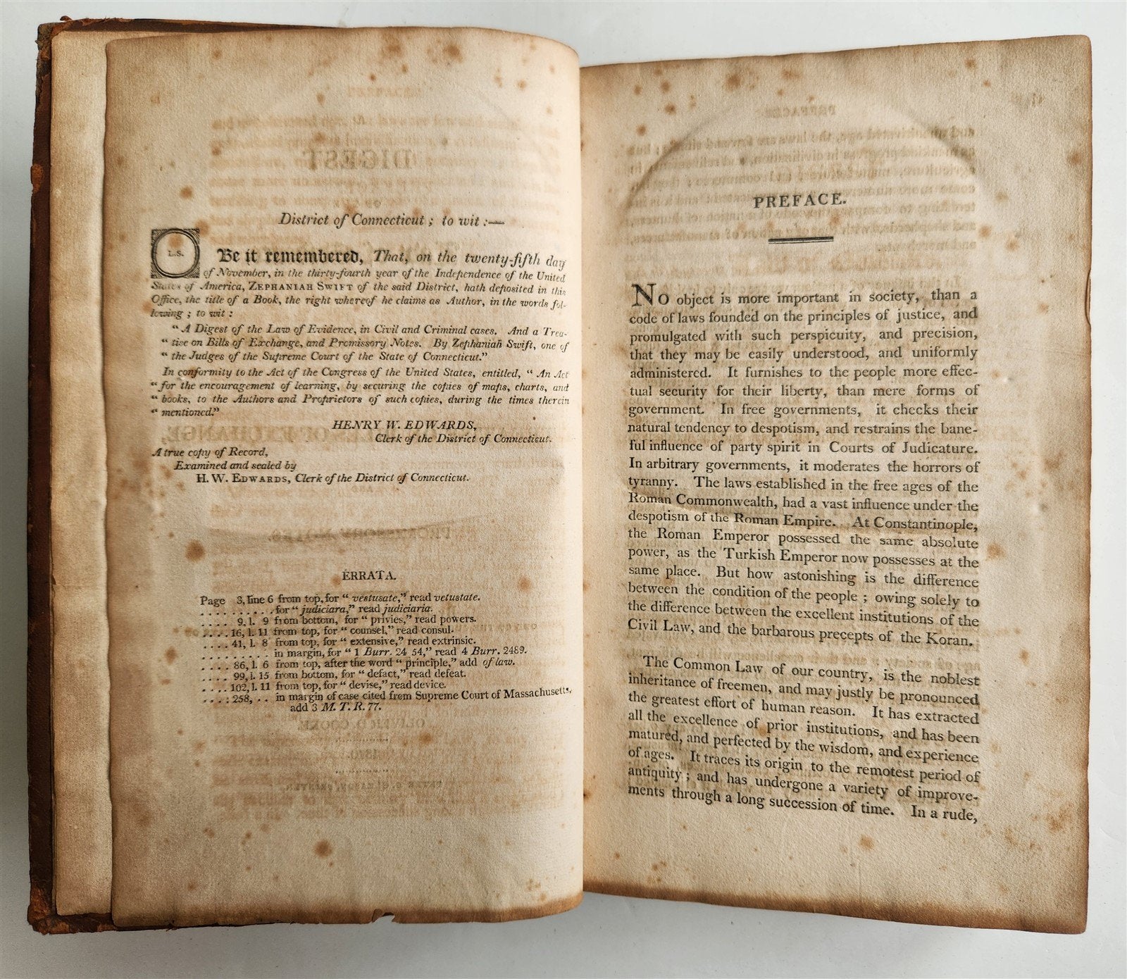 1810 DIGEST OF THE LAW OF EVIDENCE by Zephaniah Swift antique AMERICANA