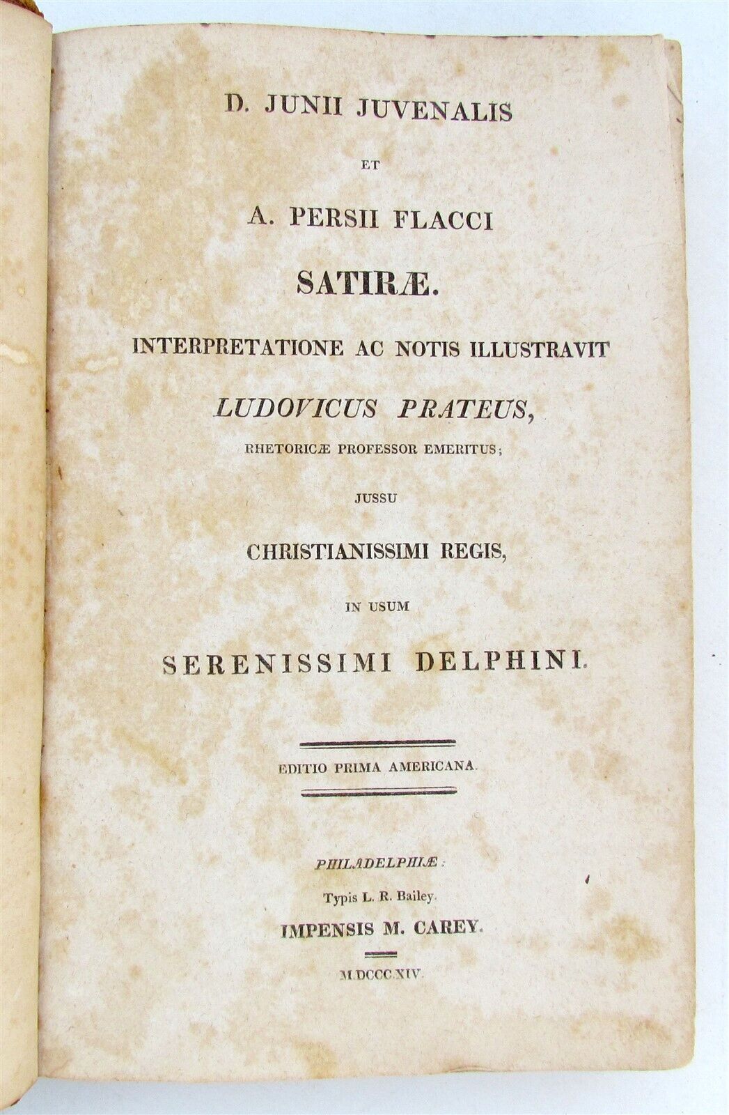 1814 JUNII JUVENALIS et PERSII FLACCI SATIRAE antique 1st American EDITION
