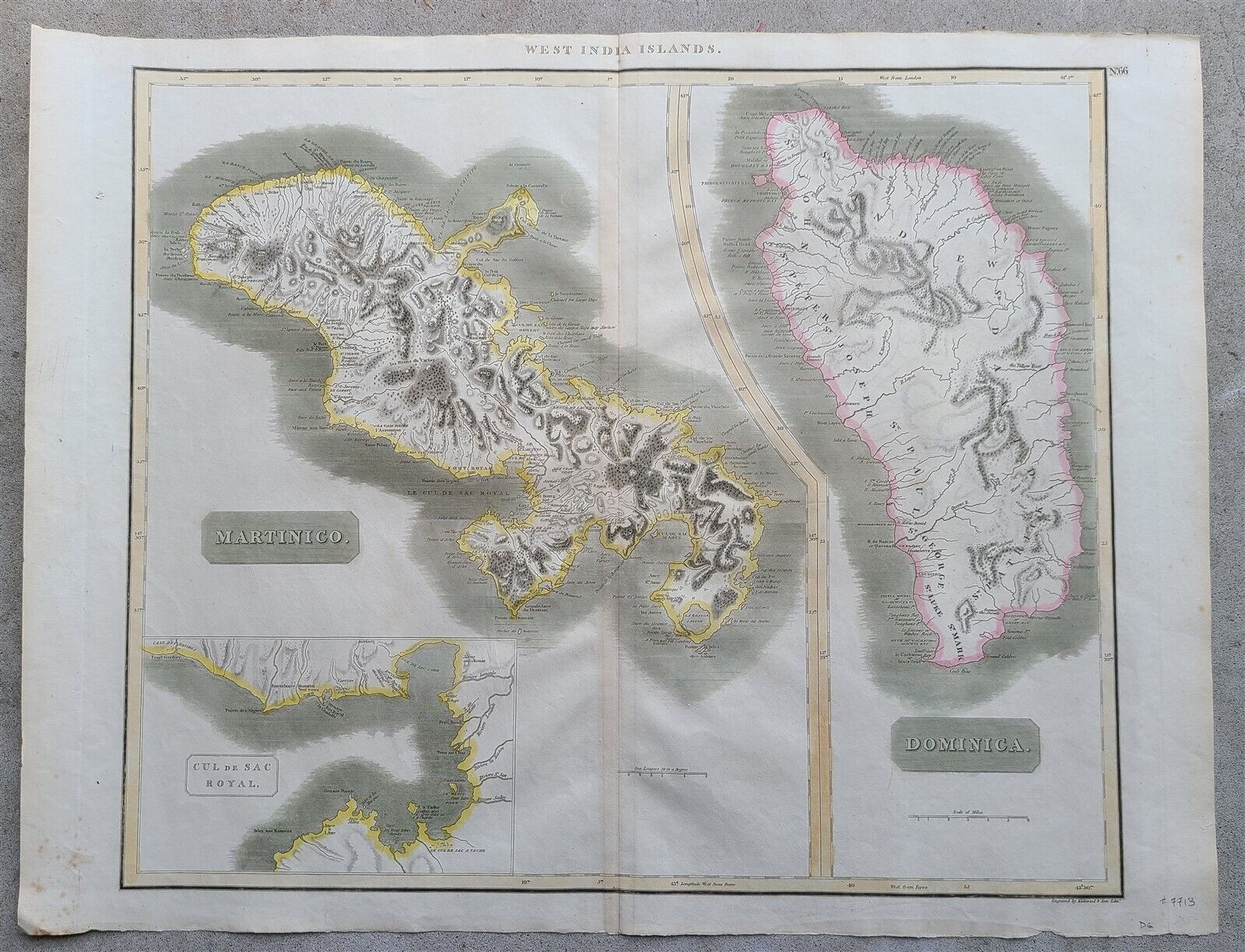West India Islands.MARTINICO & DOMINICA engraved in 1814 in Edinburgh by Kirkwood and Sons for Thomson's New General Atlas.Size 21 x 28 in (including margins)Very good condition=================