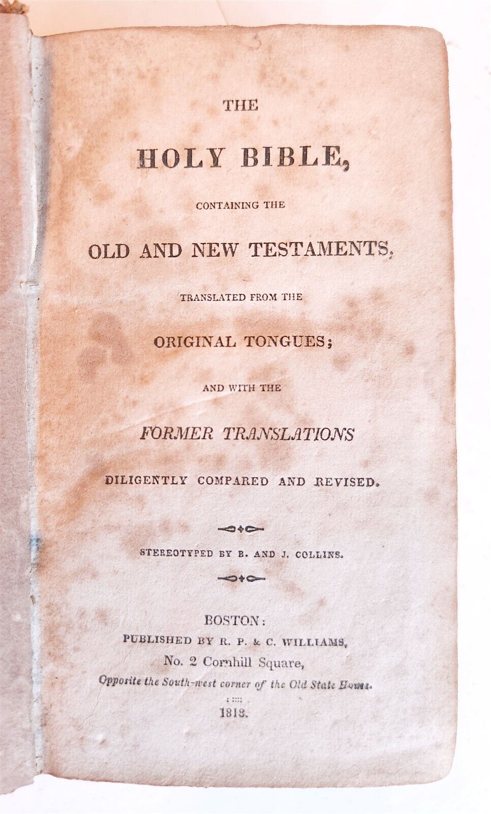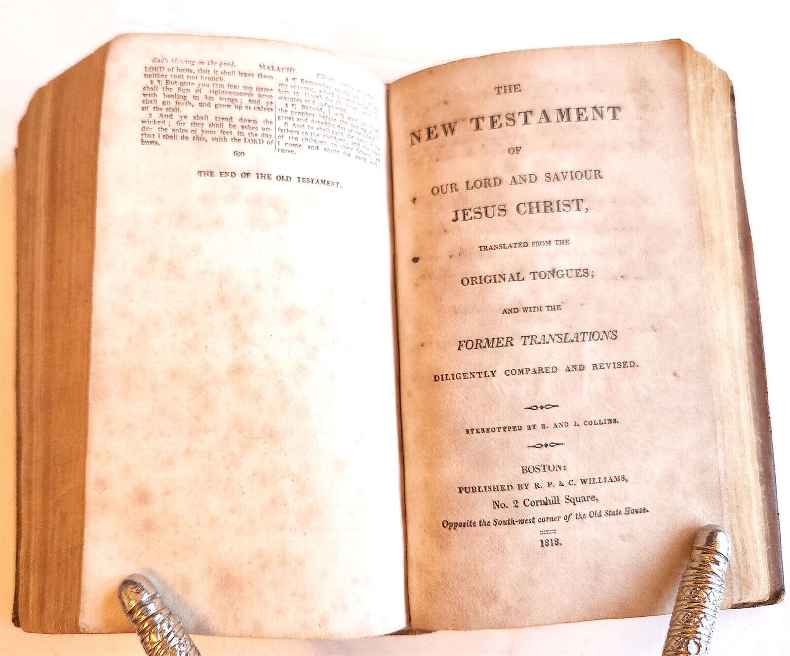 1818 BIBLE in ENGLISH antique BOSTON Americana OLD & NEW TESTAMENT